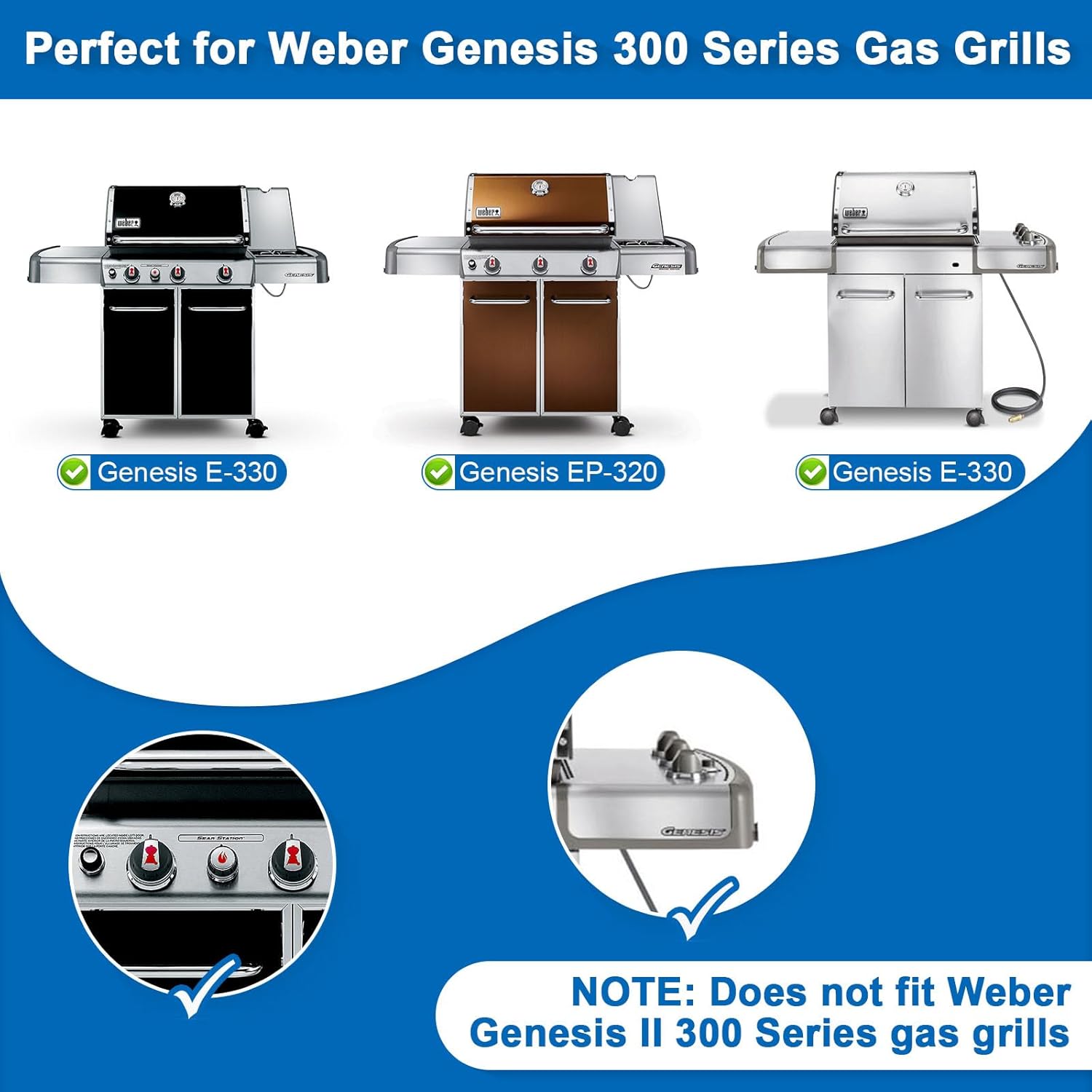 - Perfect Fit: Perfect for Weber Genesis 300 Series Grills (model years 2007-2016). Fits for Weber Genesis E-310, Genesis E-320, Genesis E-330, Genesis EP-310, Genesis EP-320, Genesis EP-330, Genesis S-310, Genesis S-320, Genesis S-330 and more. Also perfect for Pit Boss PB700 Series
