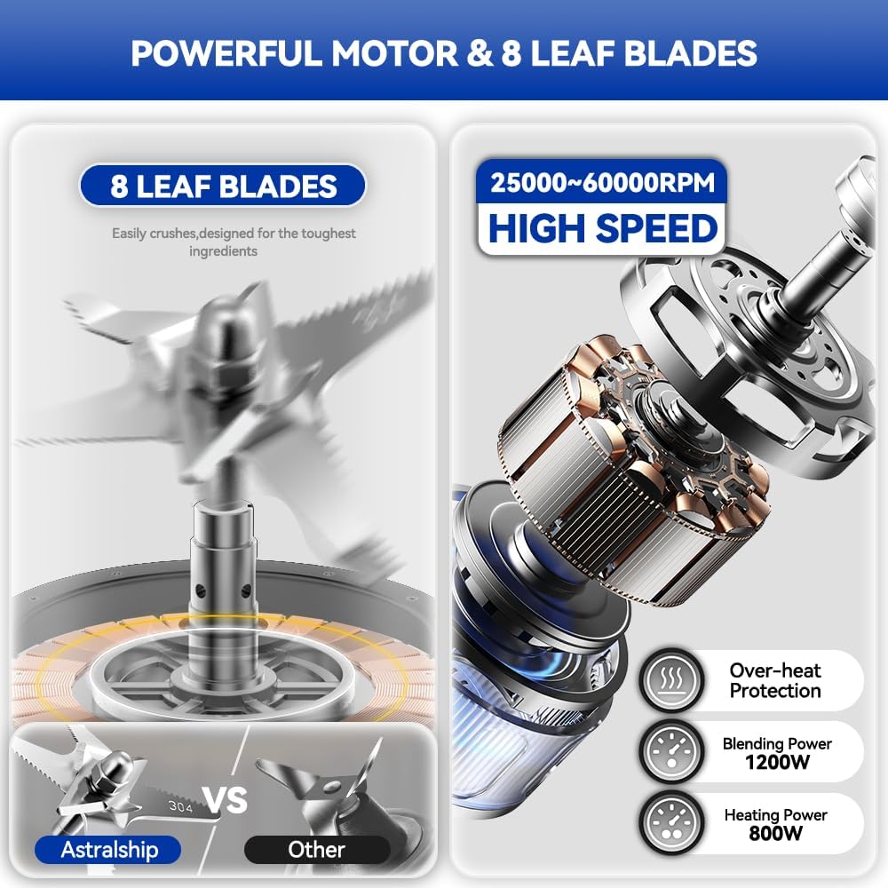 - 1200W High-Speed Power for Ultimate Efficiency – The ASTRALSHIP ASH01-S stainless steel high speed blender is engineered for performance, crushing ice, blending fruits, and pureeing vegetables with ease. Its ultra-sharp blades and durable glass pitcher make it the perfect glass blender for smoothies, soups, or sauces, etc.