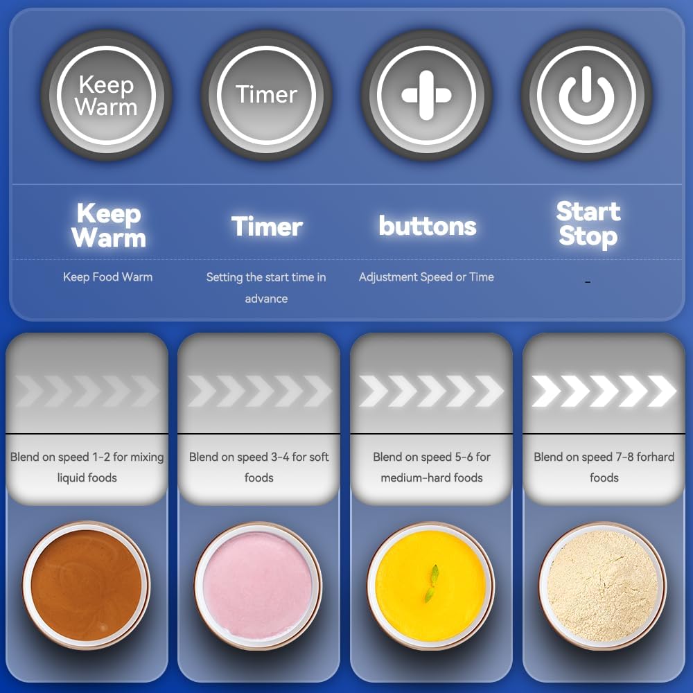- 14 Smart Presets & Built-In Timer – Simplify healthy cooking with 14 one-touch functions: smoothies, oatmeal, sauces, baby food, and more. Ideal for busy families or beginner cooks, this glass food processor takes the guesswork out of prep—just set, blend, and enjoy.