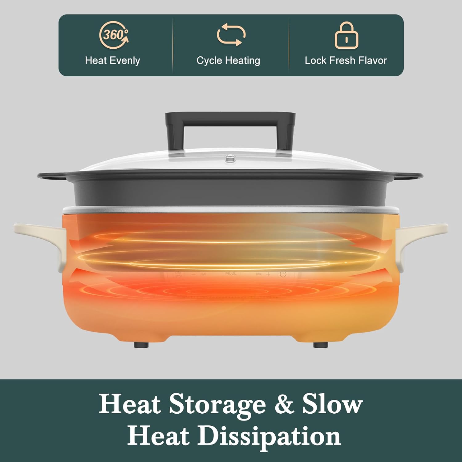 - OMNIDIRECTIONAL HEATING: The 6 Quart Multi-Cooker Base is made using bottom & side heat sources + topside heat & steam circulation to create even, omnidirectional heating - perfect for slow cooking, braising, rice cooking, and “munch, munch” more