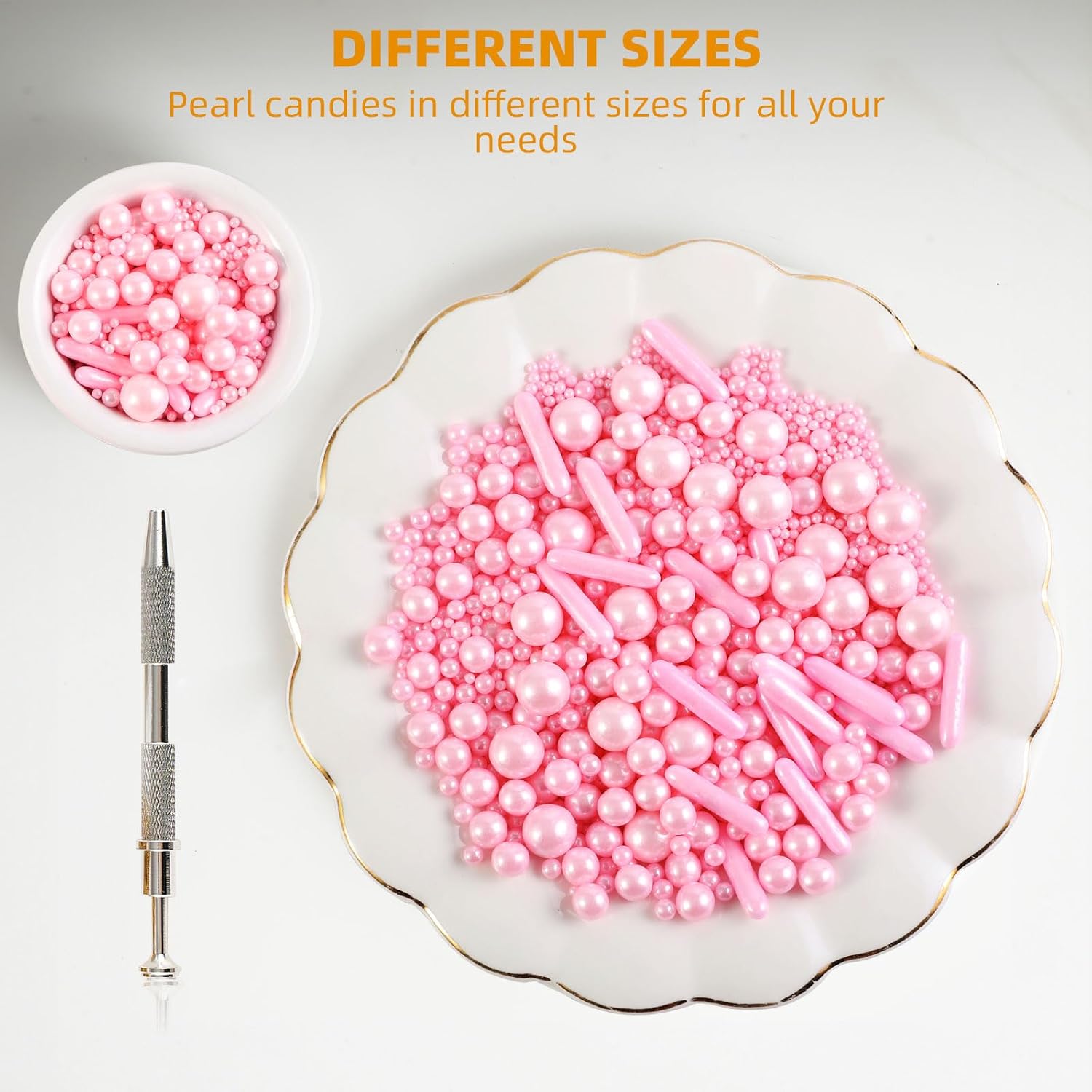 - 【Product List】: You will receive: 1 box of Pink cake sprinkles, 118g/4.16oz. 1 piece of pearl grabber. Sufficient quantity, convenient and practical, it can meet your daily needs well.