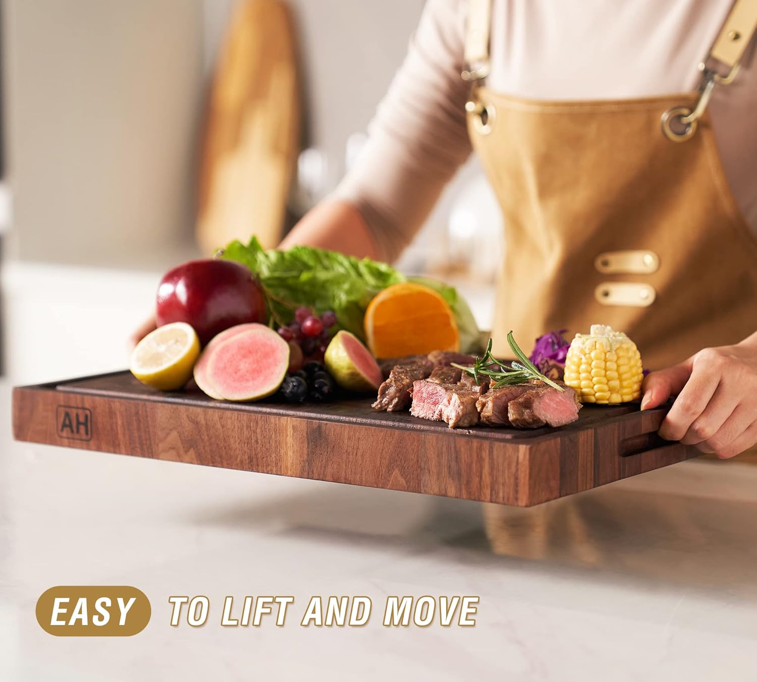 - Special Feature : Build-in Groove, Built-in Handle, End Grain Construction, Long Lasting, Reversible