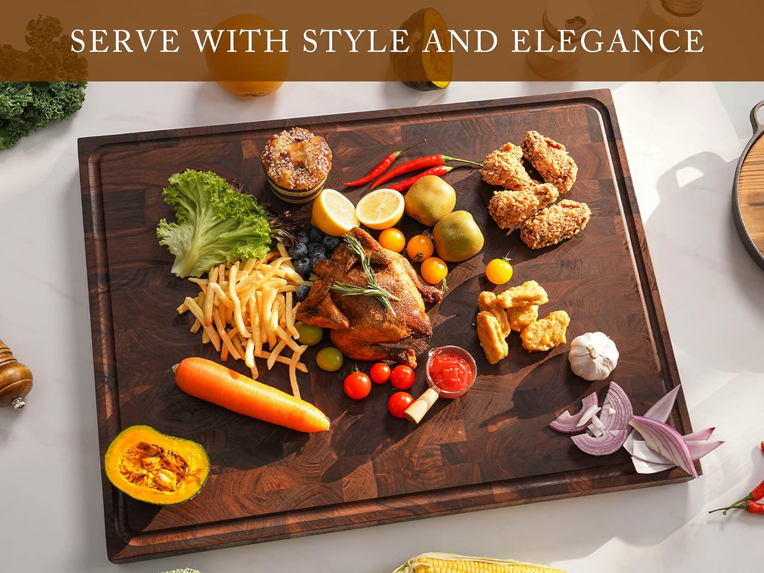 - PREMIUM AMERICAN BLACK WALNUT – one of the best hardwoods, when it comes to long-lasting, high-quality cutting boards. Any professional or home chef would be happy to have. Comes in gorgeous color and texture, a stunning piece of masterpiece that will elevate any kitchen. Other than that it's easy on knives