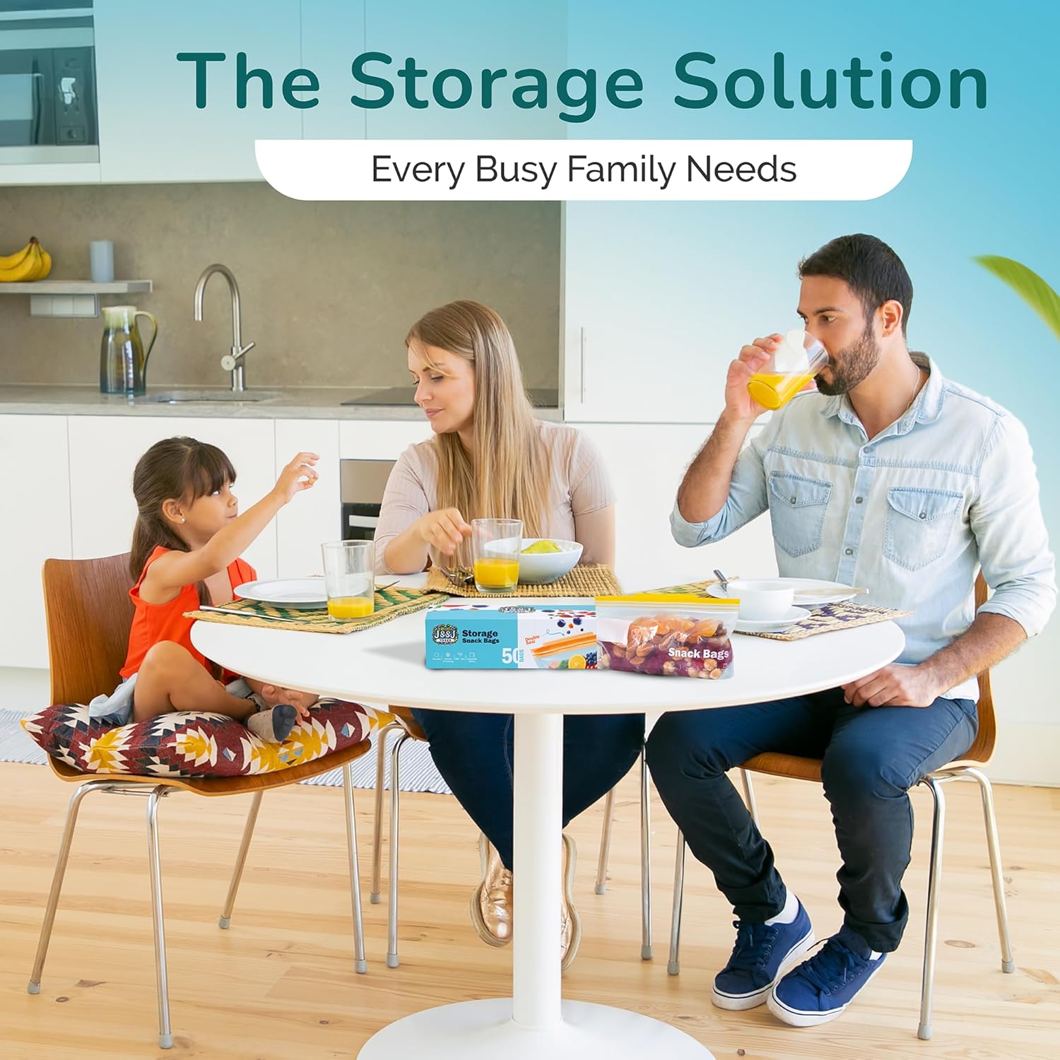 J&&J Fresh Storage Snack Bags, 50 Pack — Reusable Snack Bags, BPA-Free, Leakproof — Expandable Bottom, Microwave-Safe, Strong Zipper Lock Seal — Snack Bag for Freezer & Fridge — Durable & Washable