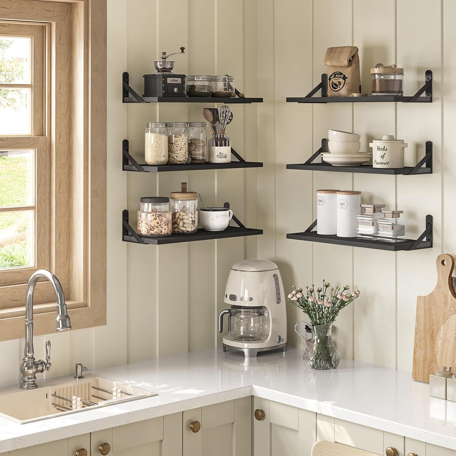 YGEOMER 16.5 Inch Floating Shelves for Wall, Farmhouse Wall Shelves for Bedroom, Bathroom Storage, Living Room and Kitchen Decor (Set of 6 Black)