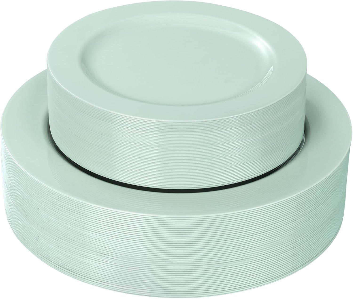 - REUSABLE&DISPOSABLE: Our sage green dessert plates and sage green dinner plates are unpatterned and unprinted. Wash the sage green plastic plates with water after use and they will look like new. smooth surfaces allow easy hand-washing for repeated use