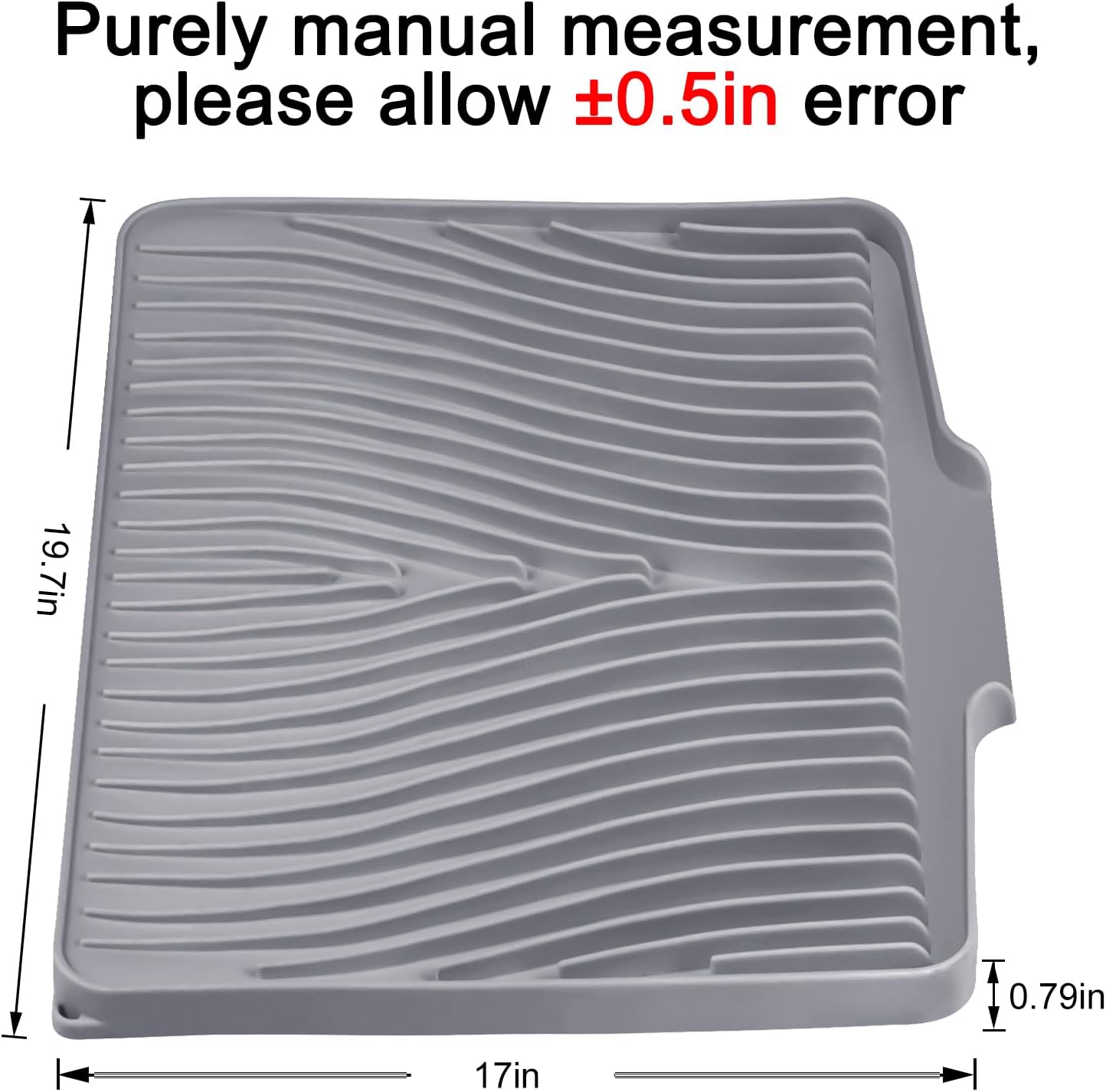 - Quick Drying Mat: TIKNIK dish drying mat measures 19.7" x 17", where washed dishes can be placed for air drying. The folding, raised and innovative design of the quick dry dish mat allows air to circulate under the dishes,and features unique diagonal ridges to easily remove moisture, and a specially designed rim that lets water drain directly into the sink. This keeps your countertops dry and clean, and says goodbye to wet countertops.