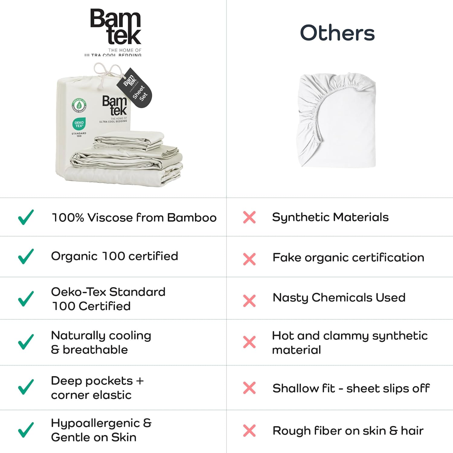- Because You Deserve Better: Say goodbye to harsh chemicals, Bamtek 100% Viscose Bamboo Sheets are organically certified & Oeko Tex certified - skin friendly bedspread, a hypoallergenic bedding and those like you who value pure natural organic comfort.