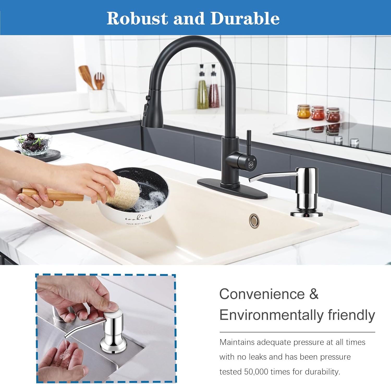 - Easy Installation:This kitchen sink soap dispenser pump is lightweight and handy, featuring an embedded design that makes it easy to install. Its base measures 1.88 inches, and it is suitable for sink holes ranging from 1.0 to 1.6 inches. With its built-in design, it saves space. Equipped with a built-in spring, it enables smooth liquid dispensing and can rotate 360 degrees.