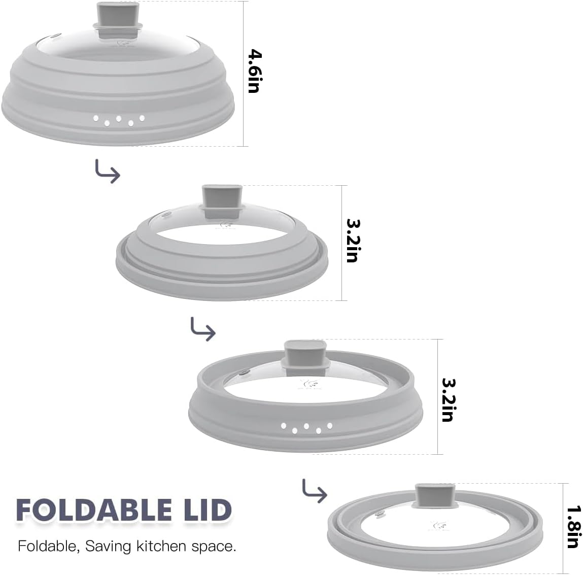 Microwave Splatter Cover Glass Cover Guard Lid with Collapsible Silicone for Food Pot Plate Cover 9.8 inch Light Grey