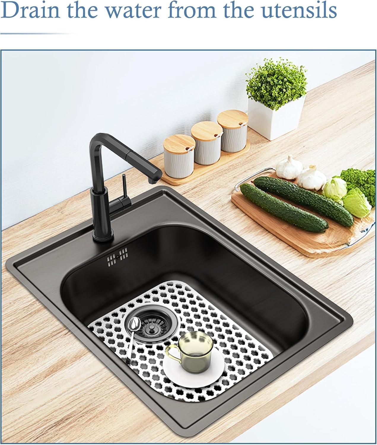 - Practical and Stylish: With its sleek grid design, our silicone sink mat adds a touch of elegance to any kitchen decor. The neutral color palette effortlessly blends in, complementing any sink or countertop style.