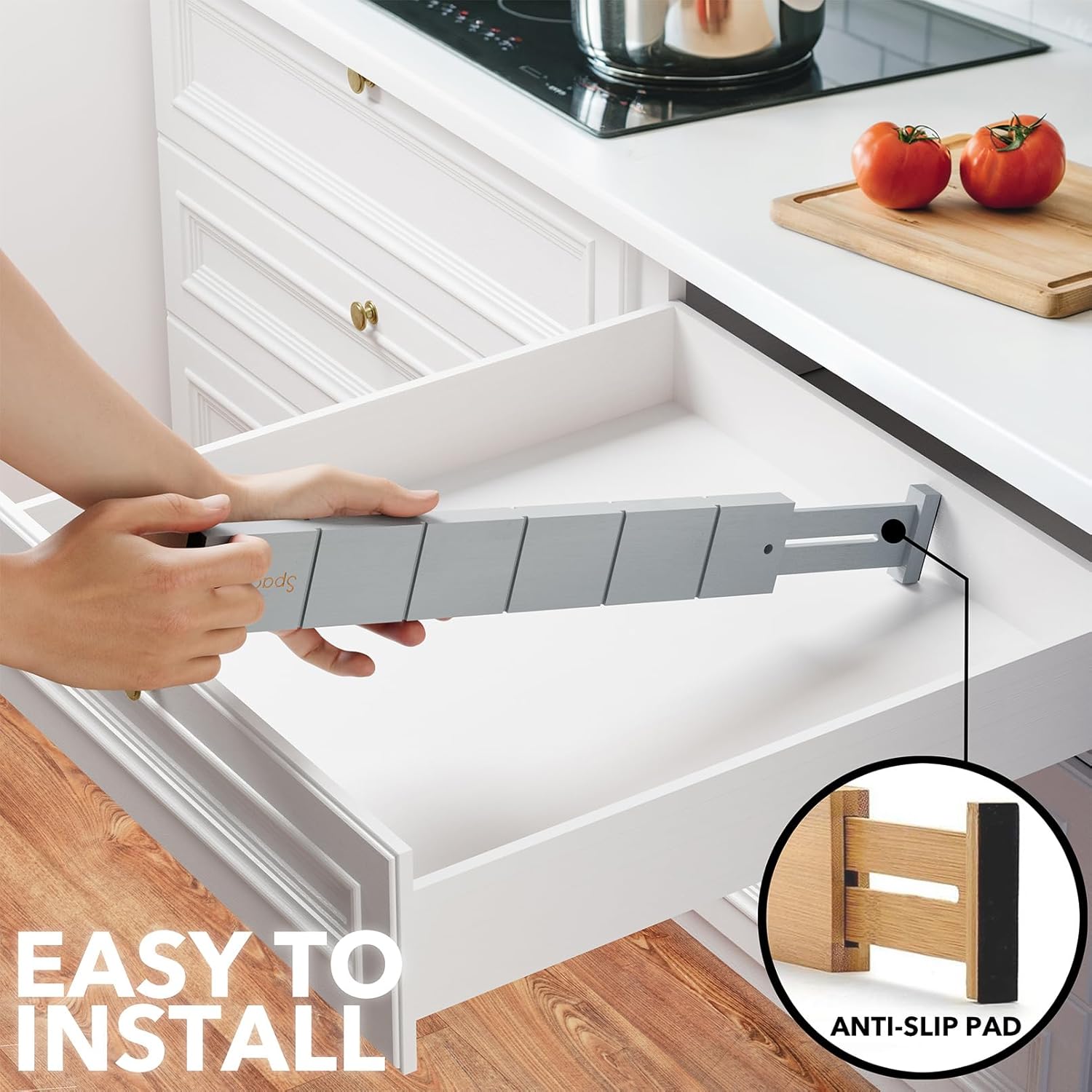 - Drawer Dividers That Stay in Place: Strong spring-loaded design makes them sturdy dividers, with non-slip rubber pads in the end, keeping it stay put all the time and protect your drawers from scratches