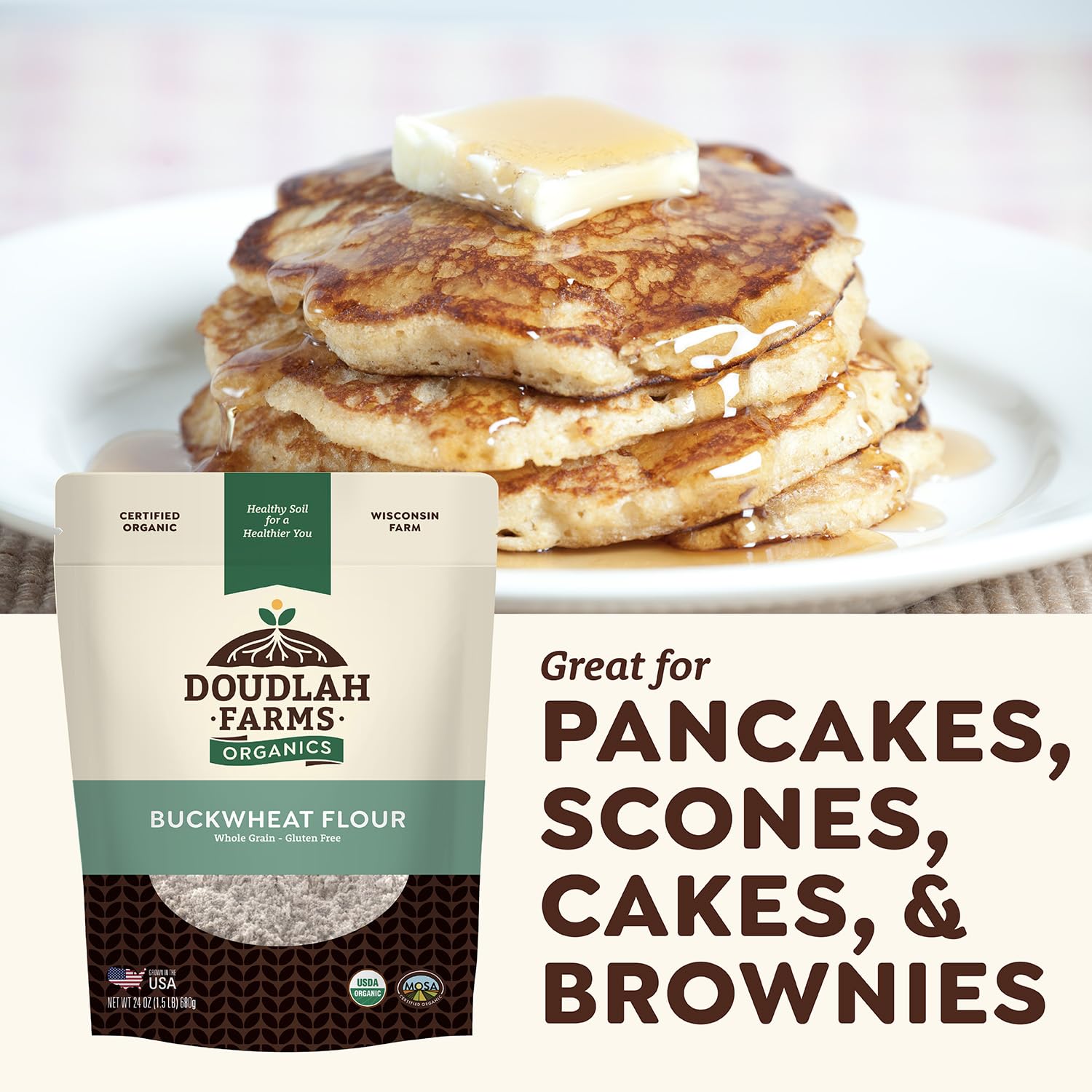 Organic Buckwheat Flour 5 lb - Non-GMO, USDA Organic, Gluten Free, Vegan - For Baking Bread, Pancakes, and More! Grown In USA, Farmed From Regenerative Soil by Doudlah Farms
