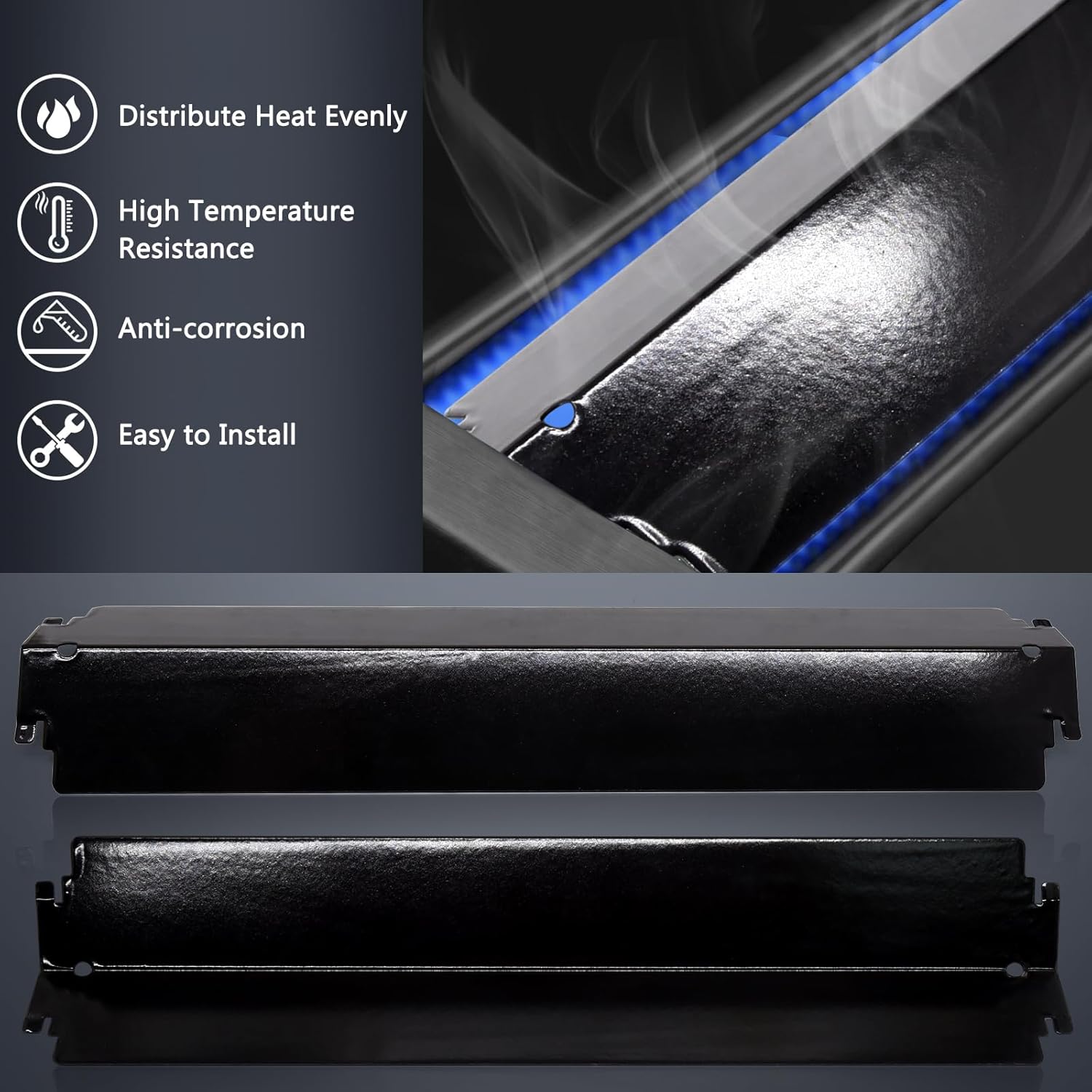 - ➤ Heat Plate Specification - The Charbroil 463268007 Grill Burner Cover Dimension: 16" x 3-13/16". Material: Heavy Duty Porcelain Steel. ★Thickness construction, protect your BBQ grill burner and prevent food directly exposure to flame. The material of our flame tamers are more heavy duty, last longer.
