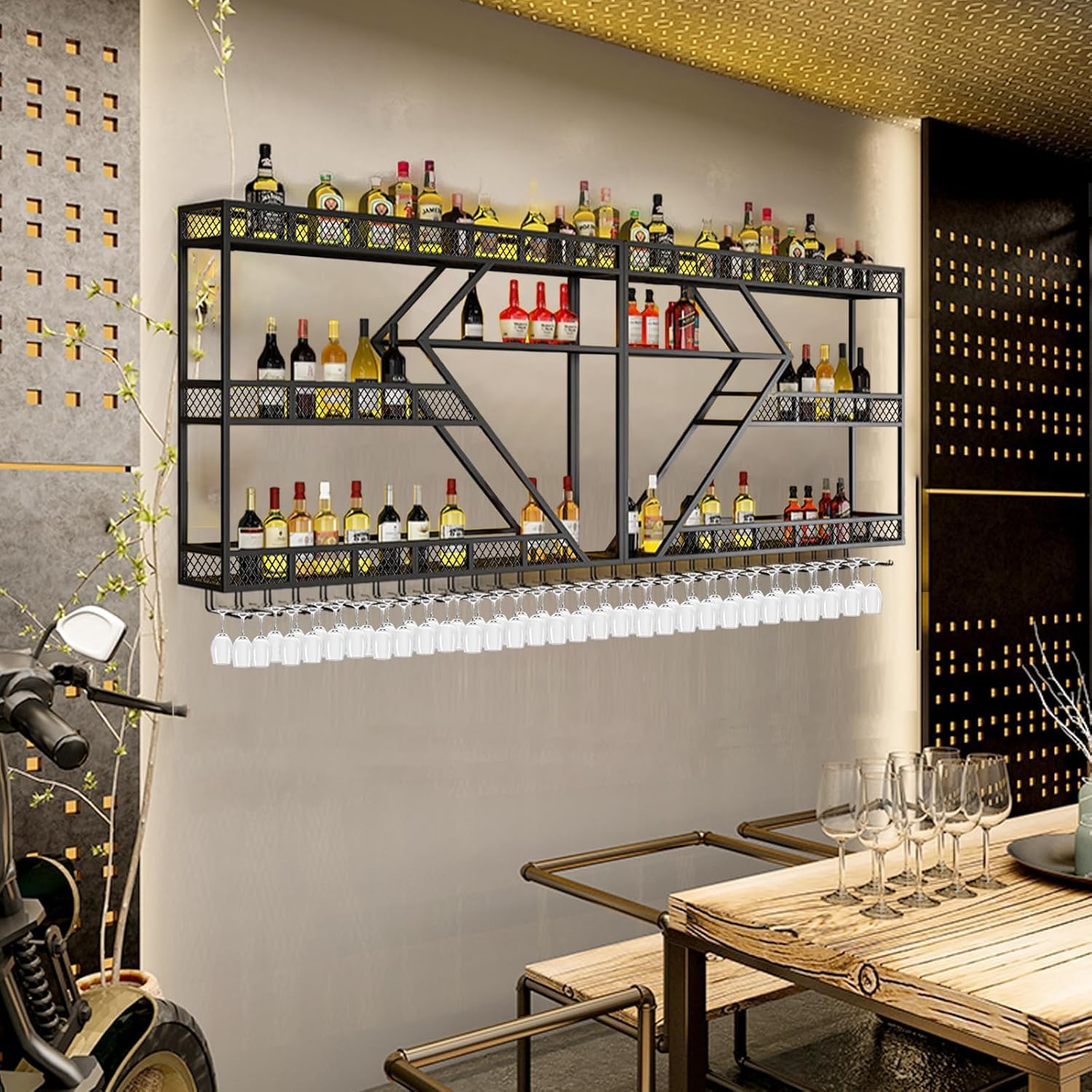 - 【WIDE USE】Our wall mounted wine rack is not only suitable for storing wine and wine bottles at home, but also can be widely used in commercial places such as bars, cafes, hotels, restaurants, commercial wine cellars and various high-end clubs. With this wine rack, you can enjoy wine and food at any time
