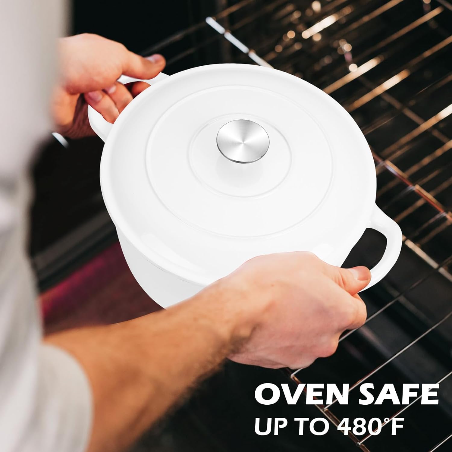 - Superior Heat Retention, our Dutch oven for bread baking ensure even heat distribution and retention, evenly heating throughout both the bottom and sidewalls, Dutch oven also reduces the amount of energy needed for cooking, ensuring perfect roasts, stews and baked bread every time. Oven Safe up to 480℉
