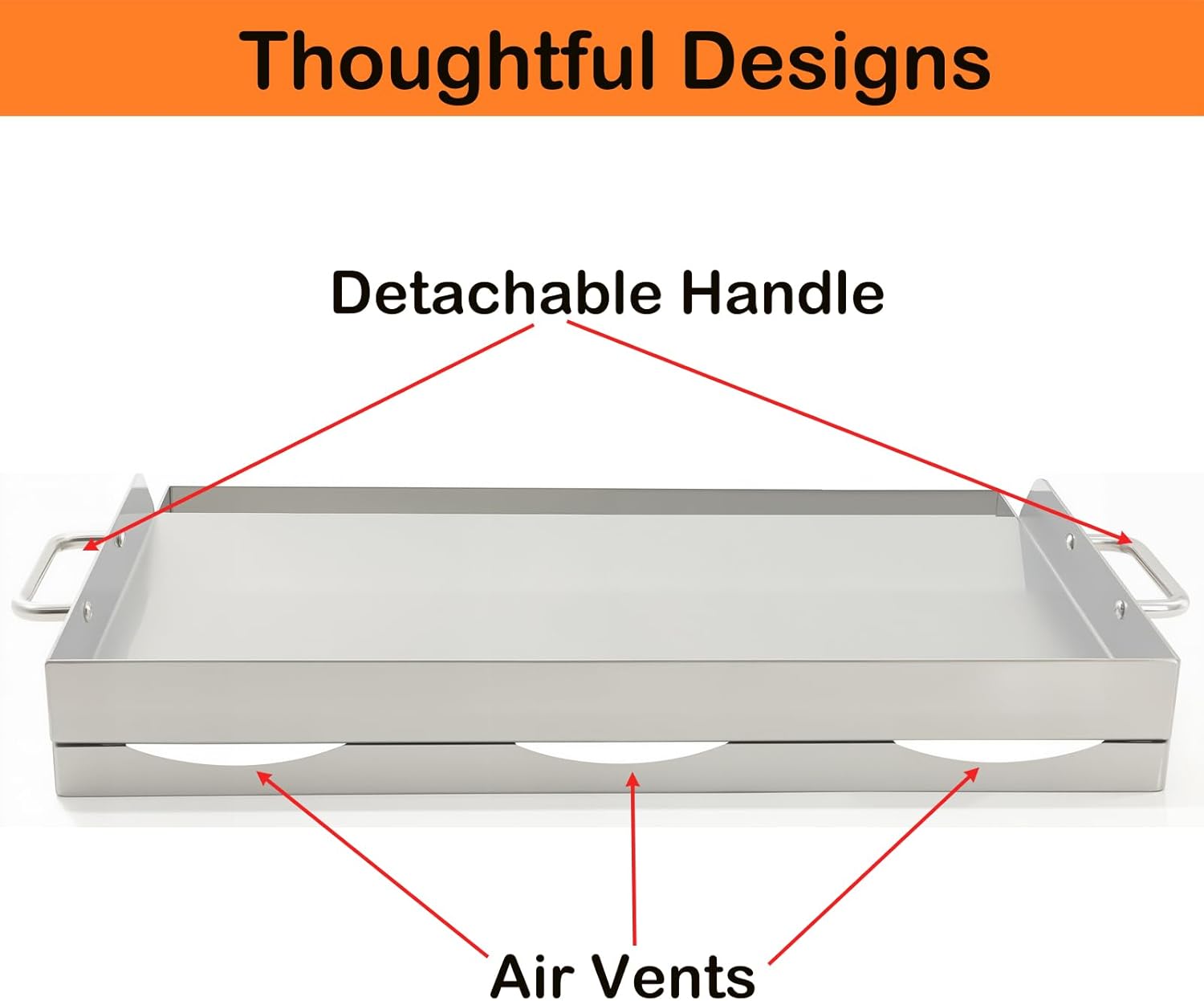 Universal Stainless Steel Griddle Flat Top Plate Grill-Top Griddle Pan with Even Heating Cross Bracing for BBQ Charcoal/Gas Grills, Camping, Tailgating, and Parties (23"*16")