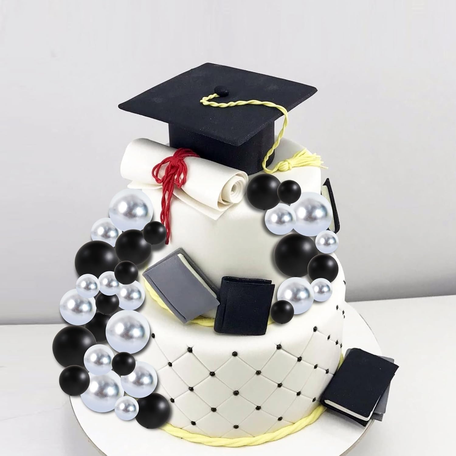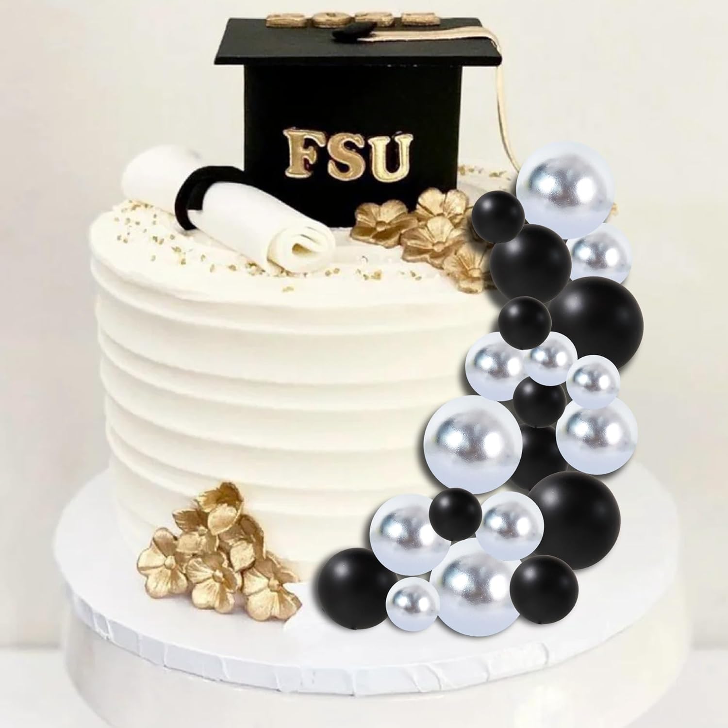 BEISHIDA 40 Pcs Ball Cake Toppers Mini Balls Cake Decorations Black Silver Foam Balls Sticks DIY Cake Topper for Baking Congrats Grade 2025 Graduation Birthday Retirement(Black Silver)