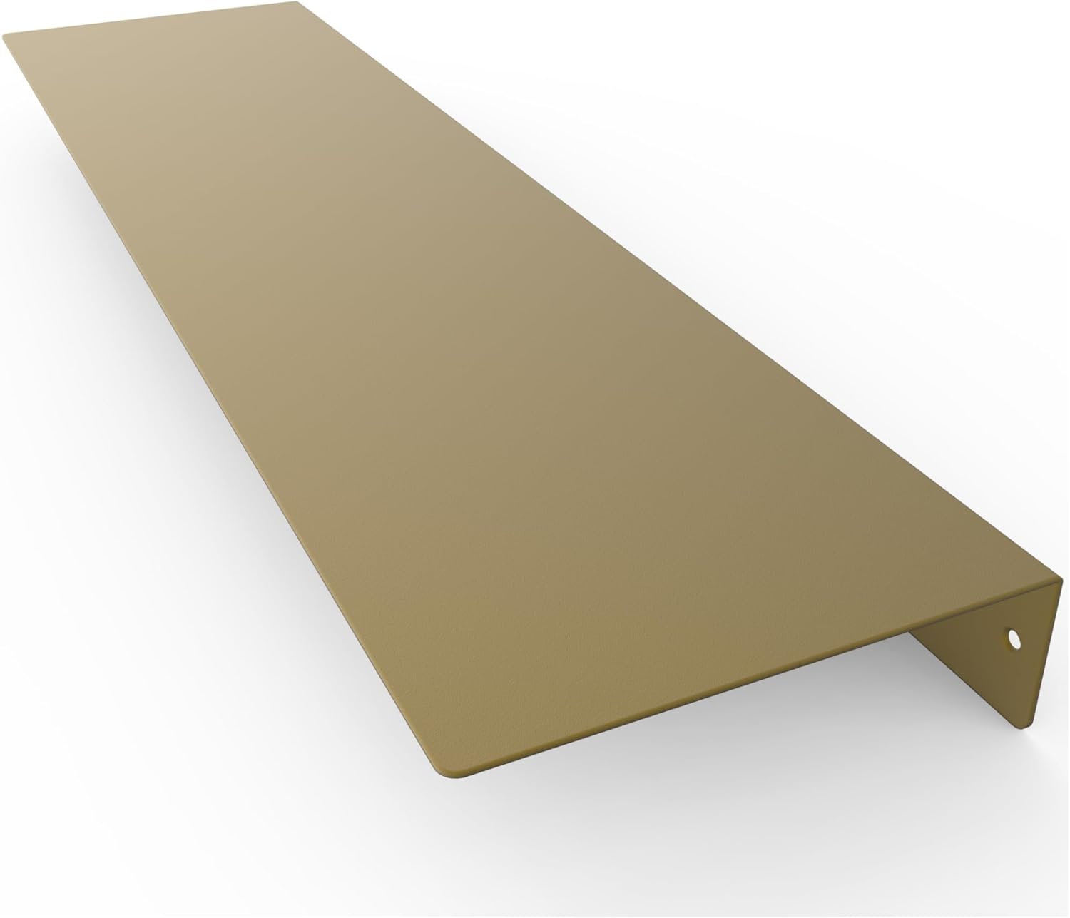 - DIMENSIONS & DETAILS: Measuring 30-inches long x 8-inches in depth, our steel floating shelf is made from 14 gauge raw steel and professionally powder coated gold. The weight of the shelf is 6.5 LBS. It's perfect for displaying books, plants, bottles, picture ledges, and retail displays