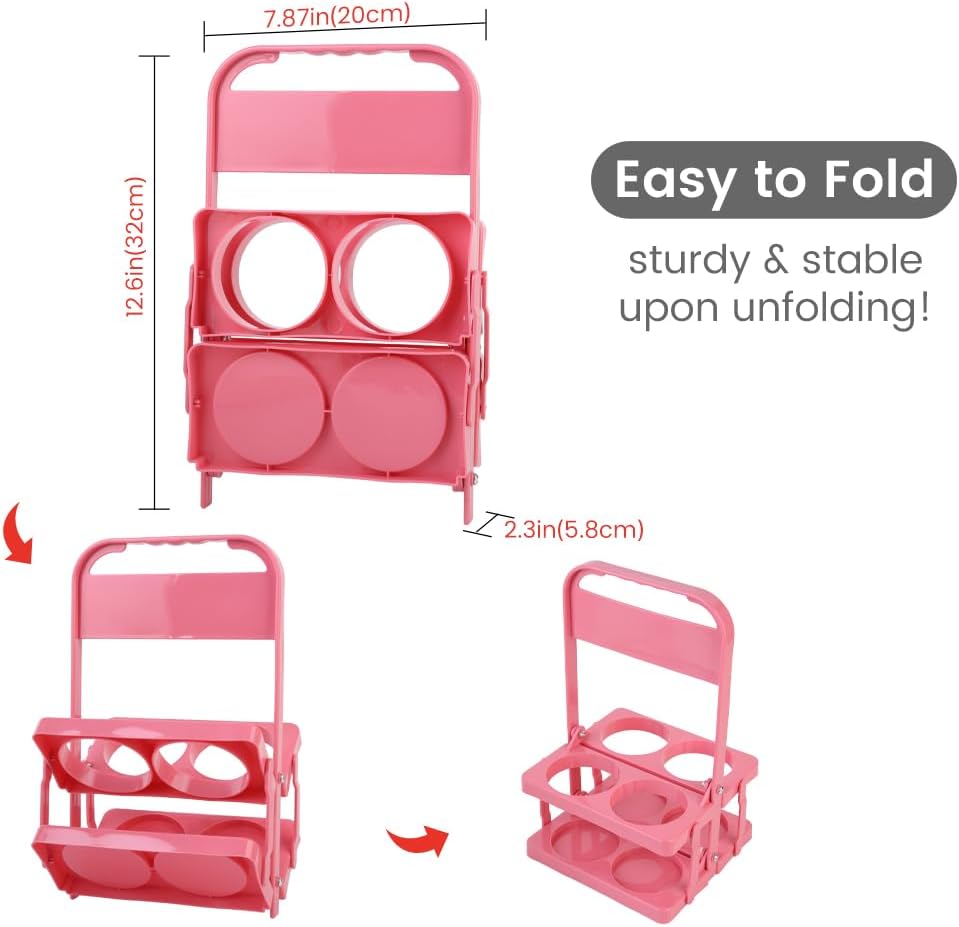 Musbus Reusable Drink Carrier with Handle for Doordash, Grubhub, Portable Cup/Coffee Holder Accessories for Delivery, Foldable Drinks Caddy with Tray, Car Durable Plastic Festive Bottle, Vacation