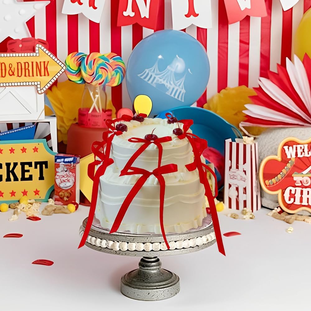 Bow Cake Toppers, 10 Pcs Large Red Bows Cupcake Toppers Themed Party Decorations, Red Birthday Cake Decorations for Wedding Baby Shower Party Supplies
