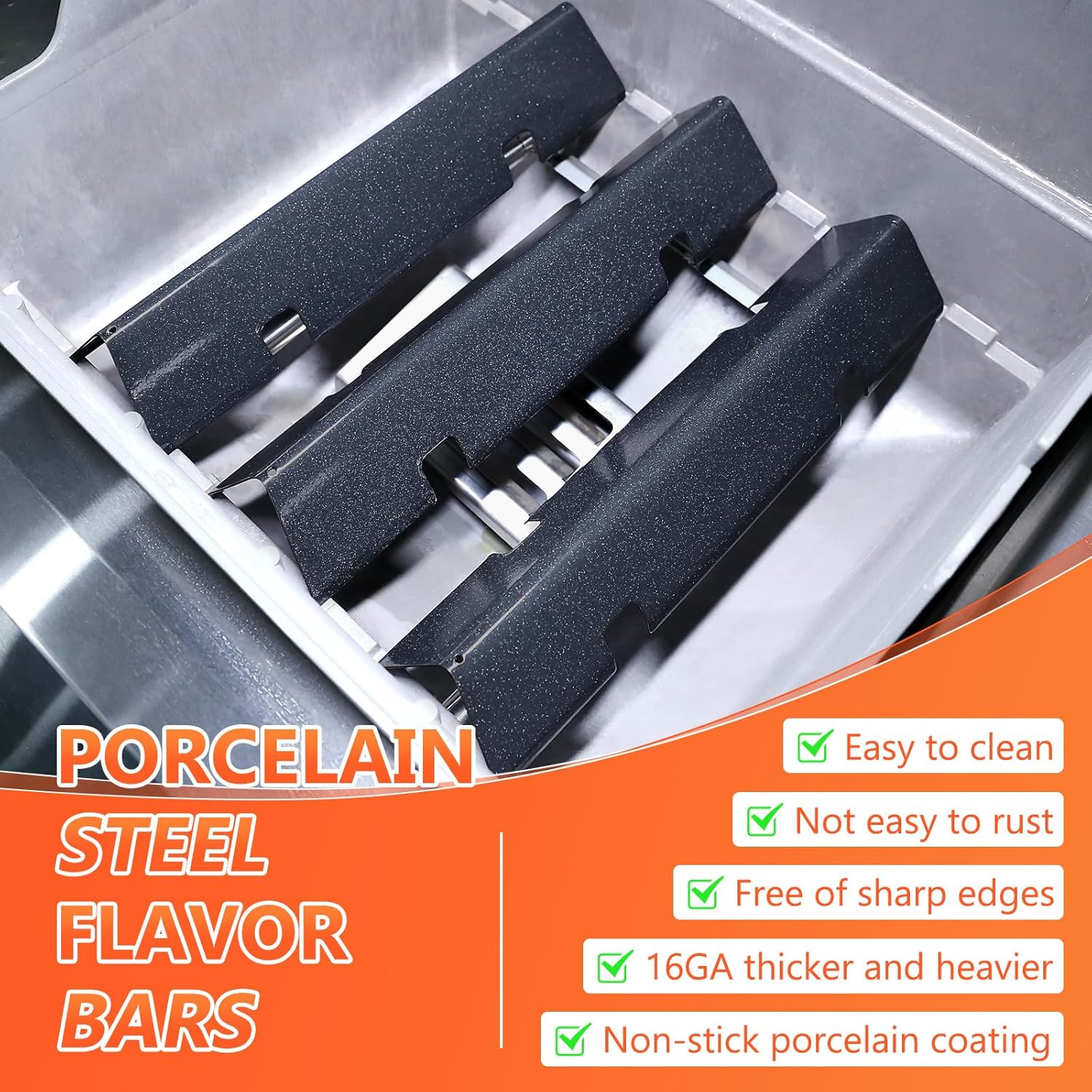 - 🔥【16GA THICKNESS- FOR QUICKER TIME TO TEMP】Made from 16GA heavy-duty porcelain steel,these weber spirit e210 flavorizer bars are thicker than other 17GA-20GA Flavour Bars, with upgraded thermodynamic properties. This extra heft means they can take the heat, use after use, without warping or losing their shape, and at the same time better protects the burner, making every grilling session more dependable.