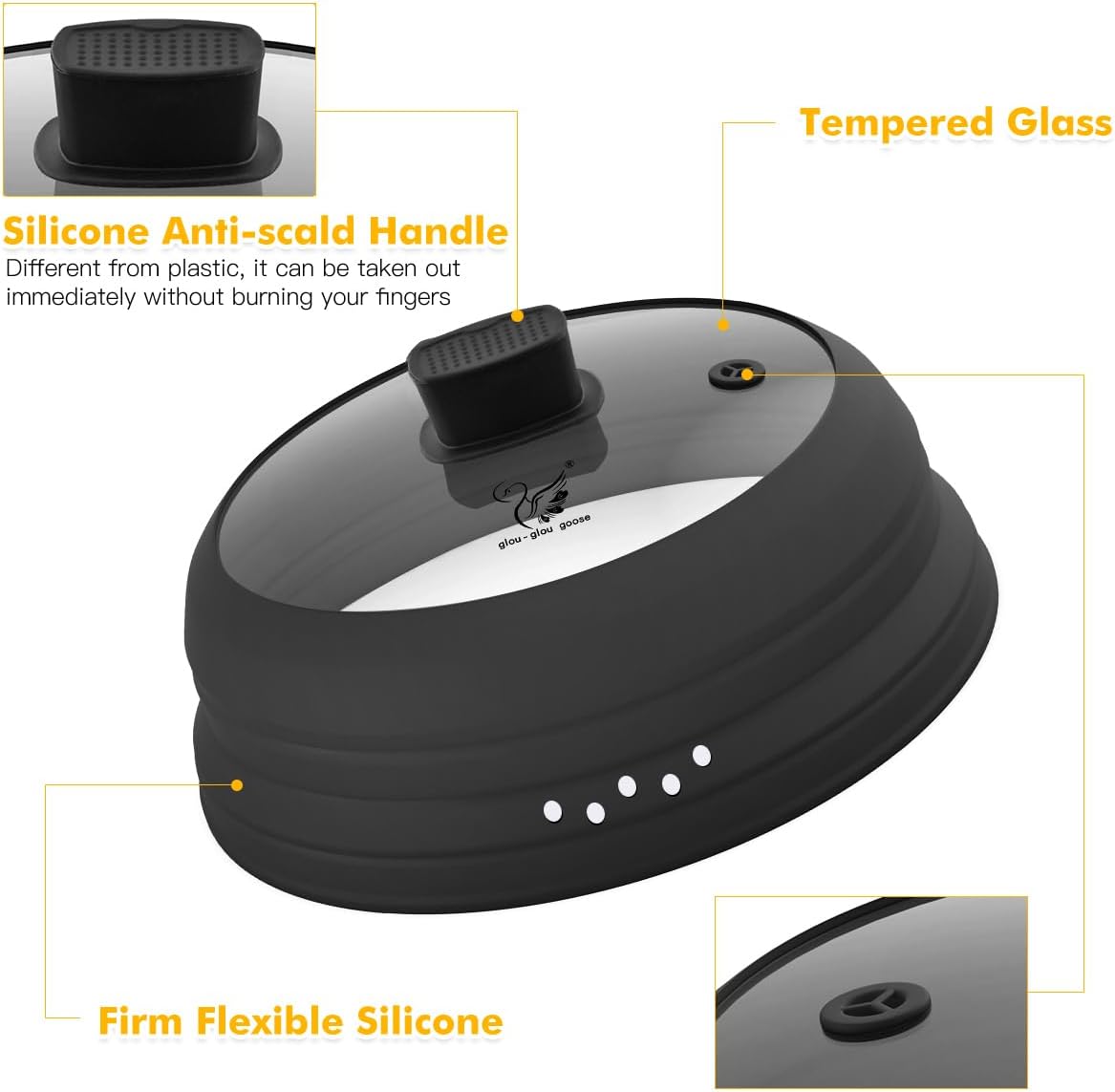 Microwave Splatter Cover Glass Cover Guard Lid with Collapsible Silicone for Food Pot Plate Cover 10.8 inch Black
