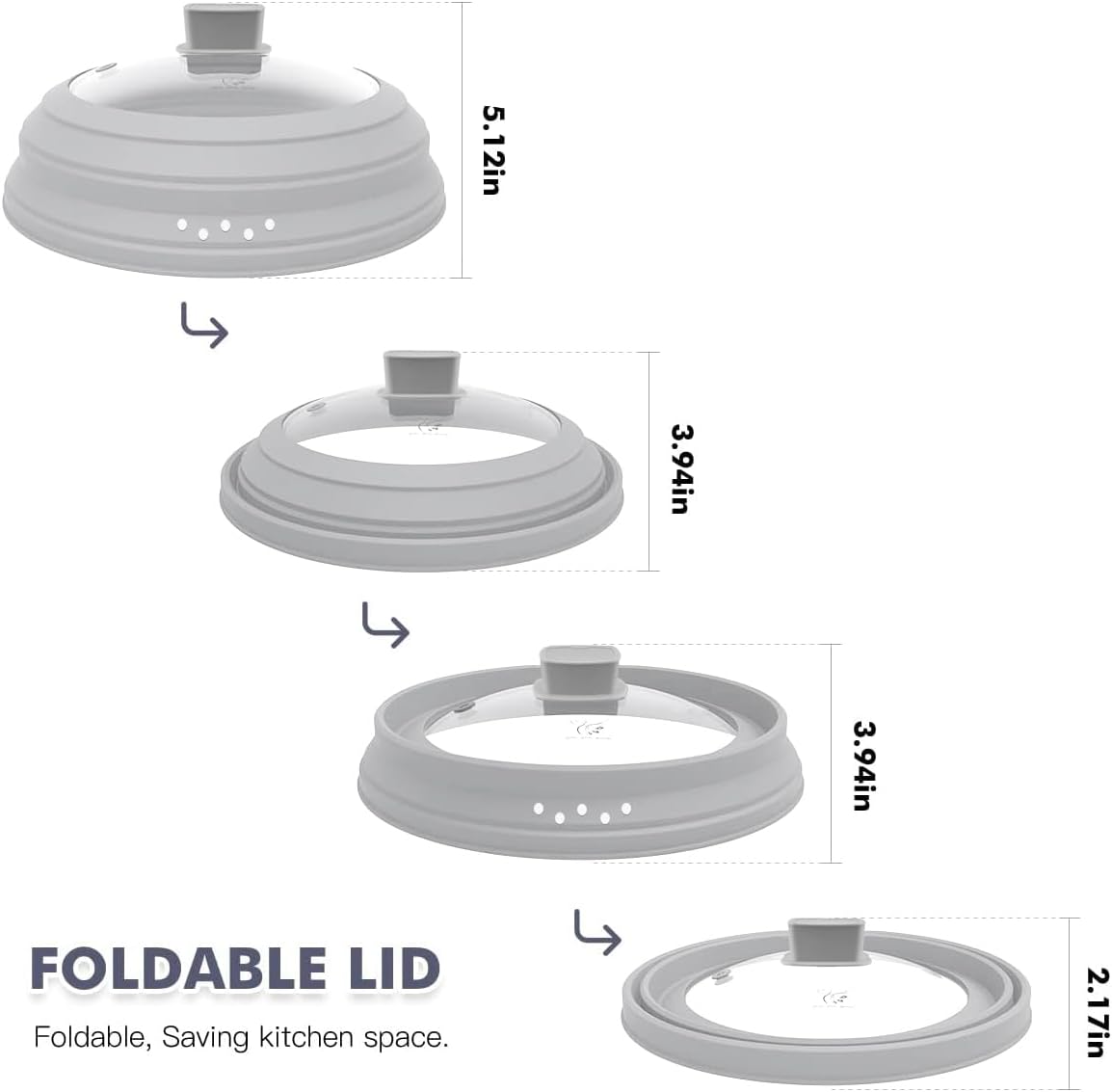 Microwave Splatter Cover Glass Cover Guard Lid with Collapsible Silicone for Food Pot Plate Cover 10.8 inch Light Grey