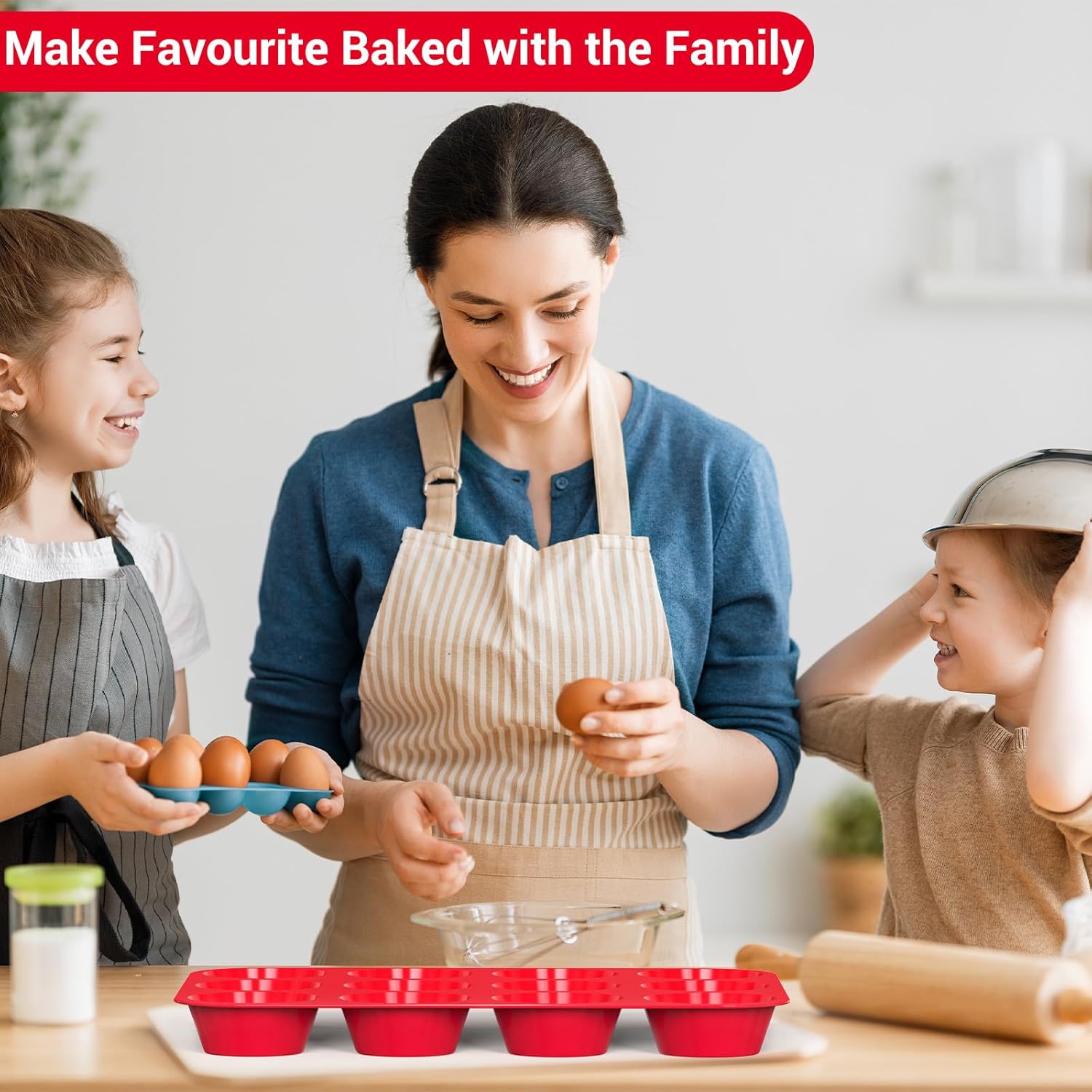 - Multi-Purpose Baking Essential: This premium silicone muffin pan offers versatile functionality for crafting cupcakes, egg bites, artisanal chocolates, delicate tarts, and decorative jellies. Ideal for everyday baking, holiday celebrations (Christmas/Thanksgiving), birthday parties, and meal prep sessions. The 12-cup XL capacity allows batch preparation for gatherings, efficiently reducing kitchen time.