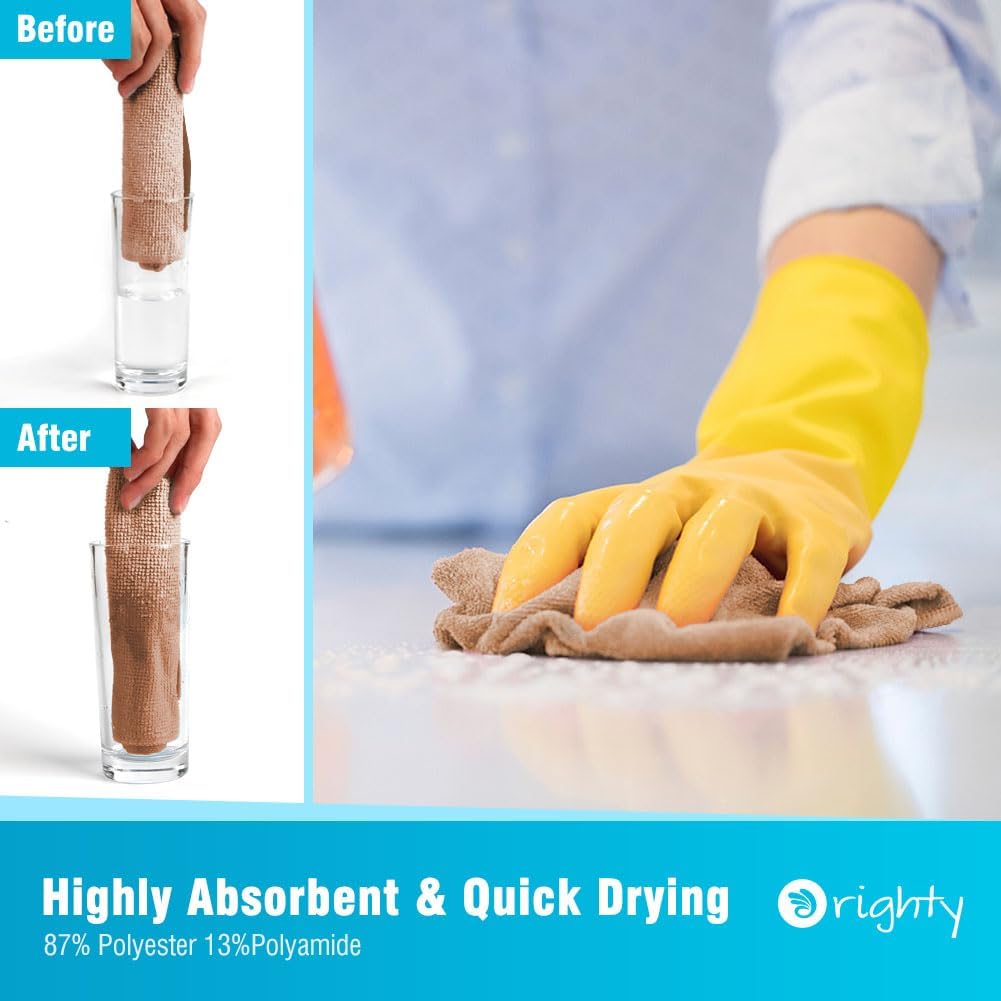 Orighty Microfiber Cleaning Cloth, 12 Pack Highly Absorbent Cleaning Supplies, Lint Free Cloths for Multiple-use, Powerful Dust Removal Clean Rags for House, Kitchen, Car Care(12x12 inch) Brown