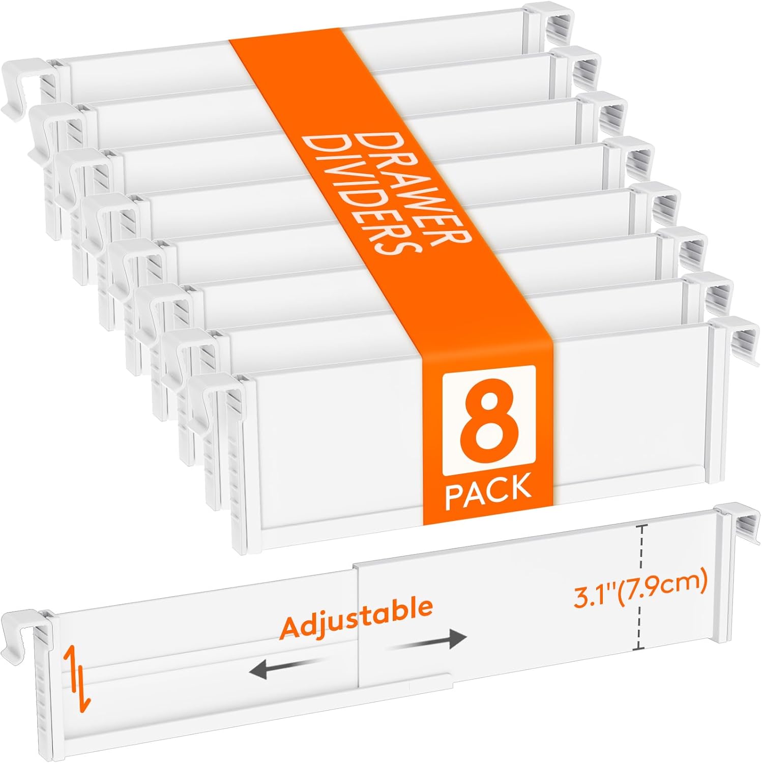 Lifewit Hanging Kitchen Drawer Dividers 3.1" High, 10-17" Adjustable Drawer Organizers for Utensils, Expandable Dresser Separators in Kitchen/Bedroom/Bathroom/Vanity/Office, White(8 Pack)