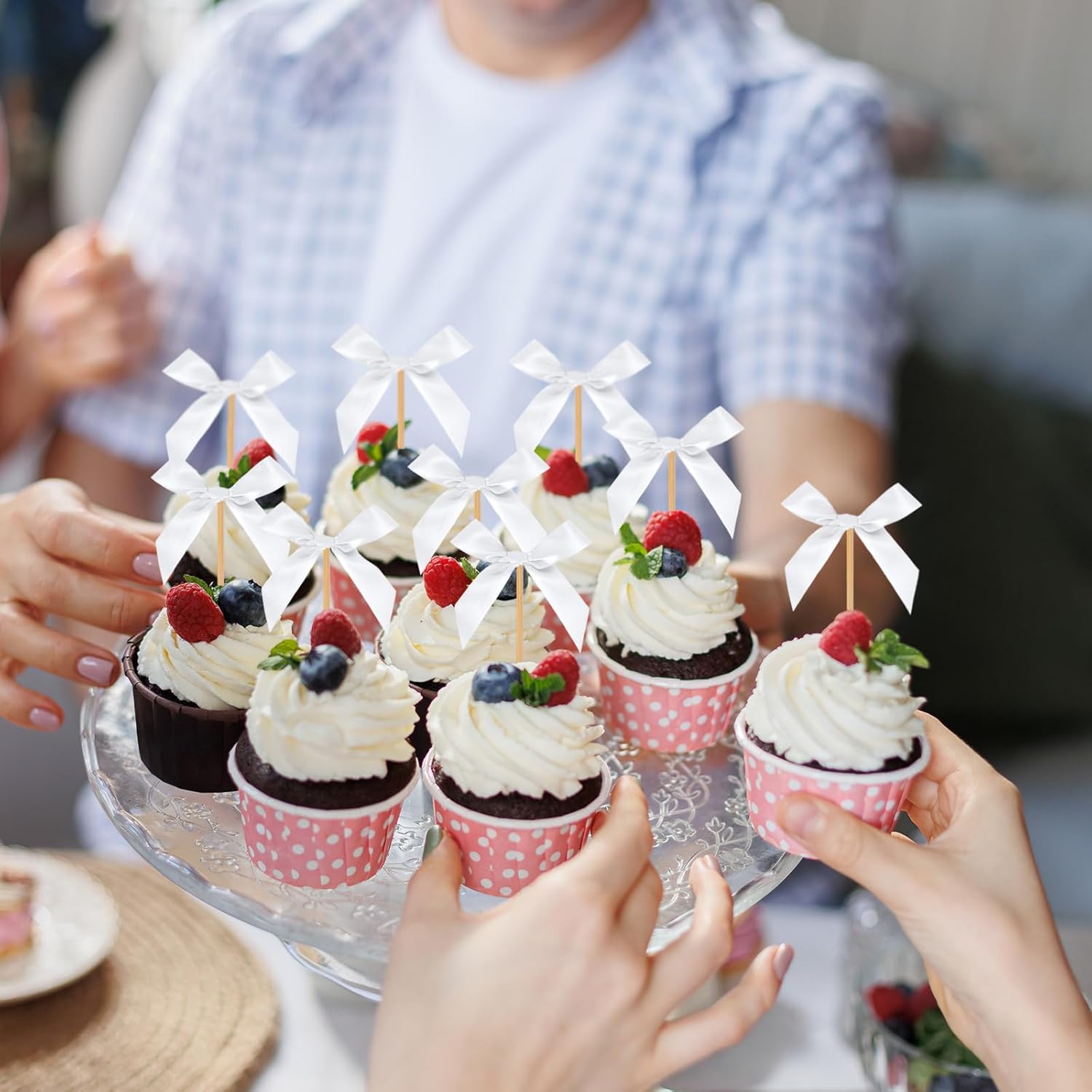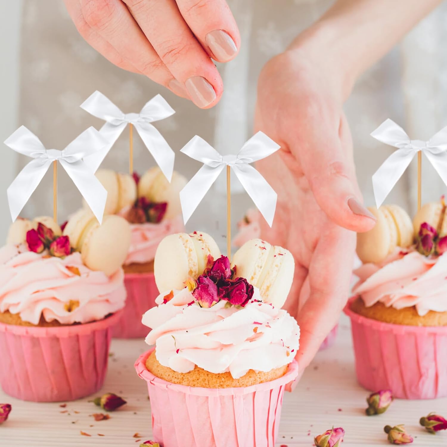 - Charming White Bow Cupcake Toppers: Add a touch of elegance to your celebration with these adorable white bow cupcake toppers. Perfect for baby showers, girly birthday parties, and other special occasions, these toppers instantly transform ordinary cupcakes into eye-catching, delightful treats