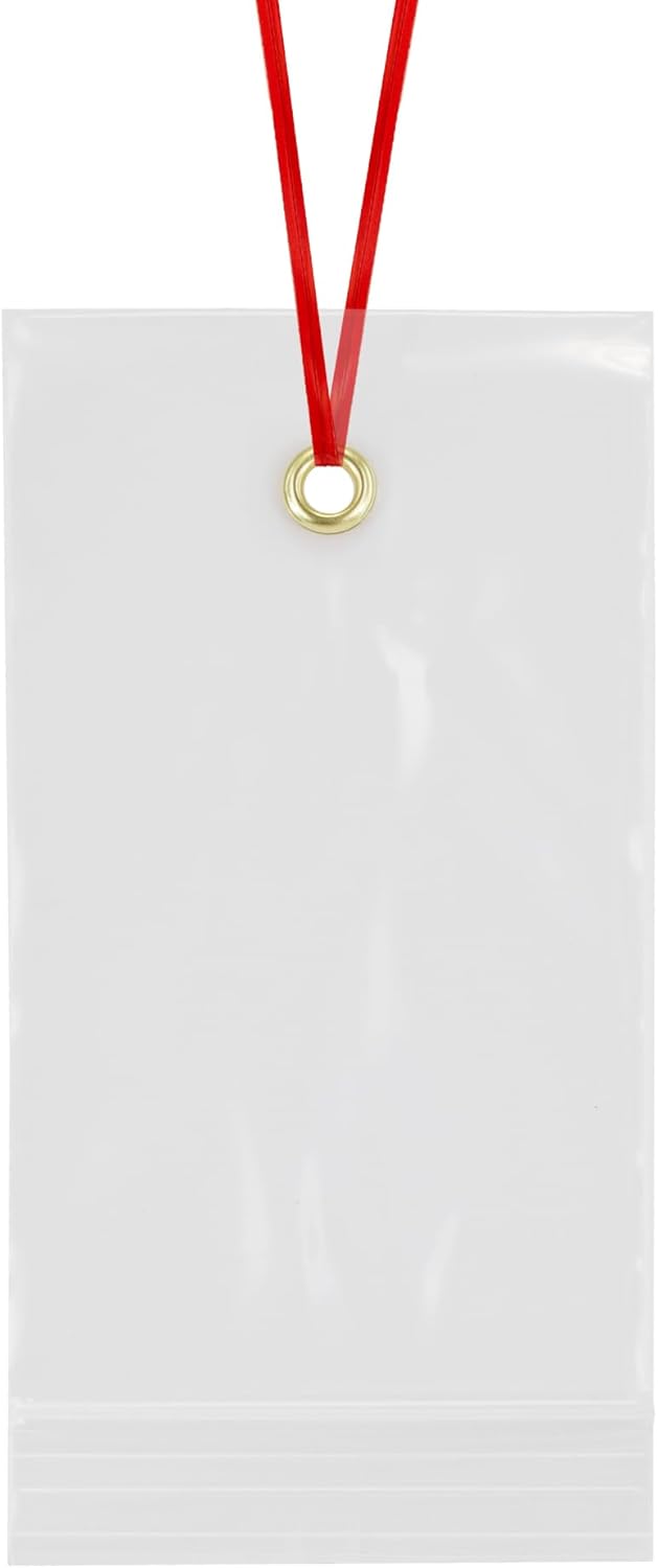 - Sturdy Metal Grommet/Eyelet for easy hanging onto equipment with twist tie (pre-inserted in the hole of each bag)