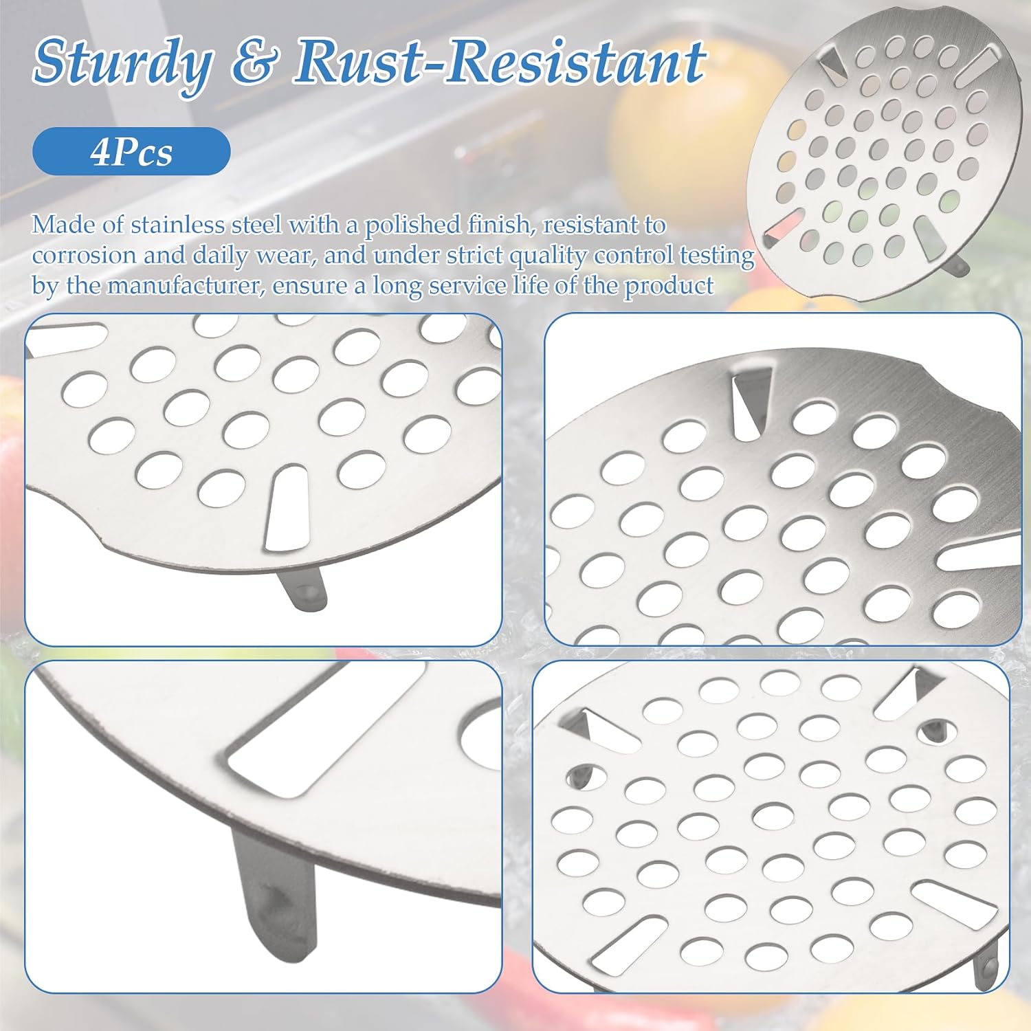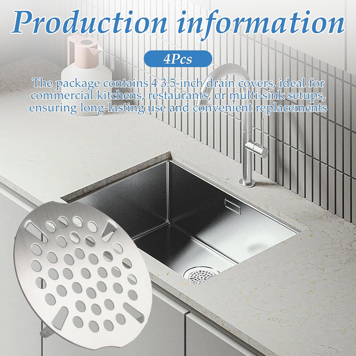 - Production information:The package contains 4 3.5-inch drain covers, ideal for commercial kitchens, restaurants, or multi-sink setups, ensuring long-lasting use and convenient replacements