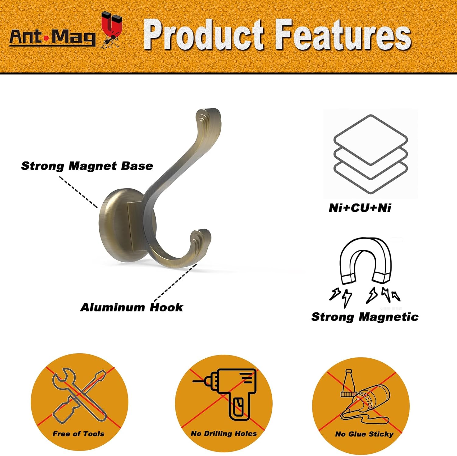- 【EASY INSTALLATION】 It is easy to use the magnet hook onto the magnetic iron surface. No drilling holes, no sticky residue, no tools required, Ant Mag magnetic strong hooks can protect your surfaces of objects from being scratched and damaged.