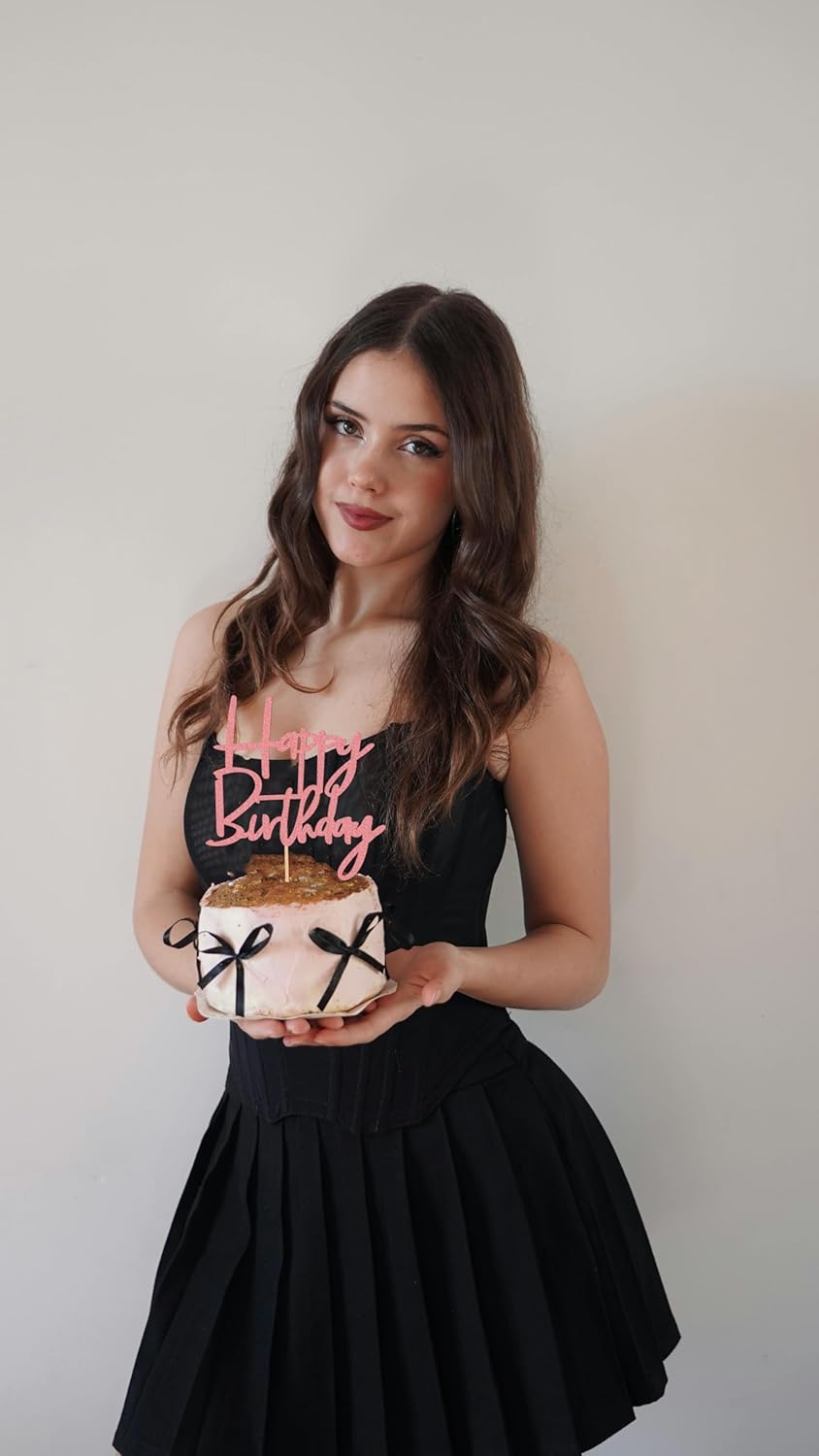 Happy Birthday Cake Topper - Glitter Pink Birthday Cake Top Decorations (Pink)
