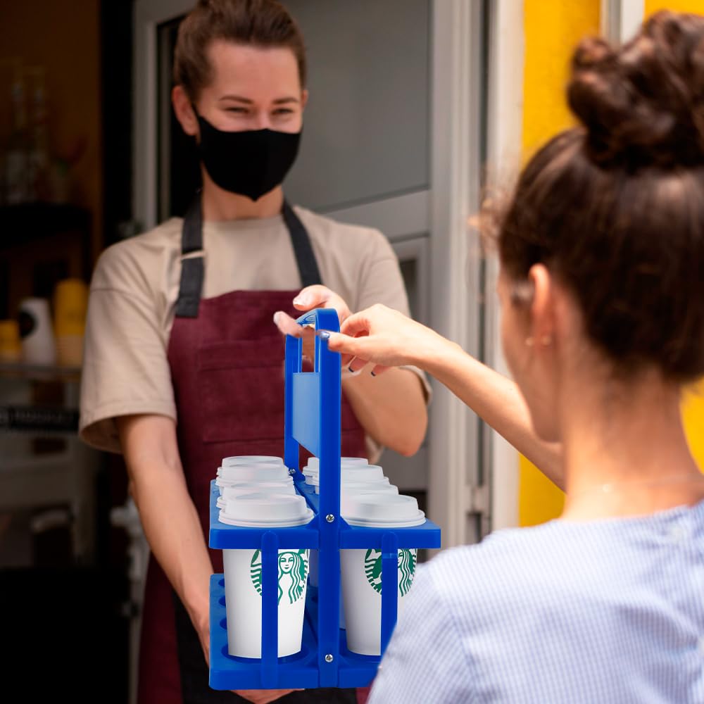 Bodaon 8 Cup Drink Carrier with Handle, Plastic Cup Carriers for Drinks, Drink Holder for Car, GrubHub/Eats Doordash Accessories, Portable Foldable Reusable Mobile, Use for Food Delivery Bag, Blue