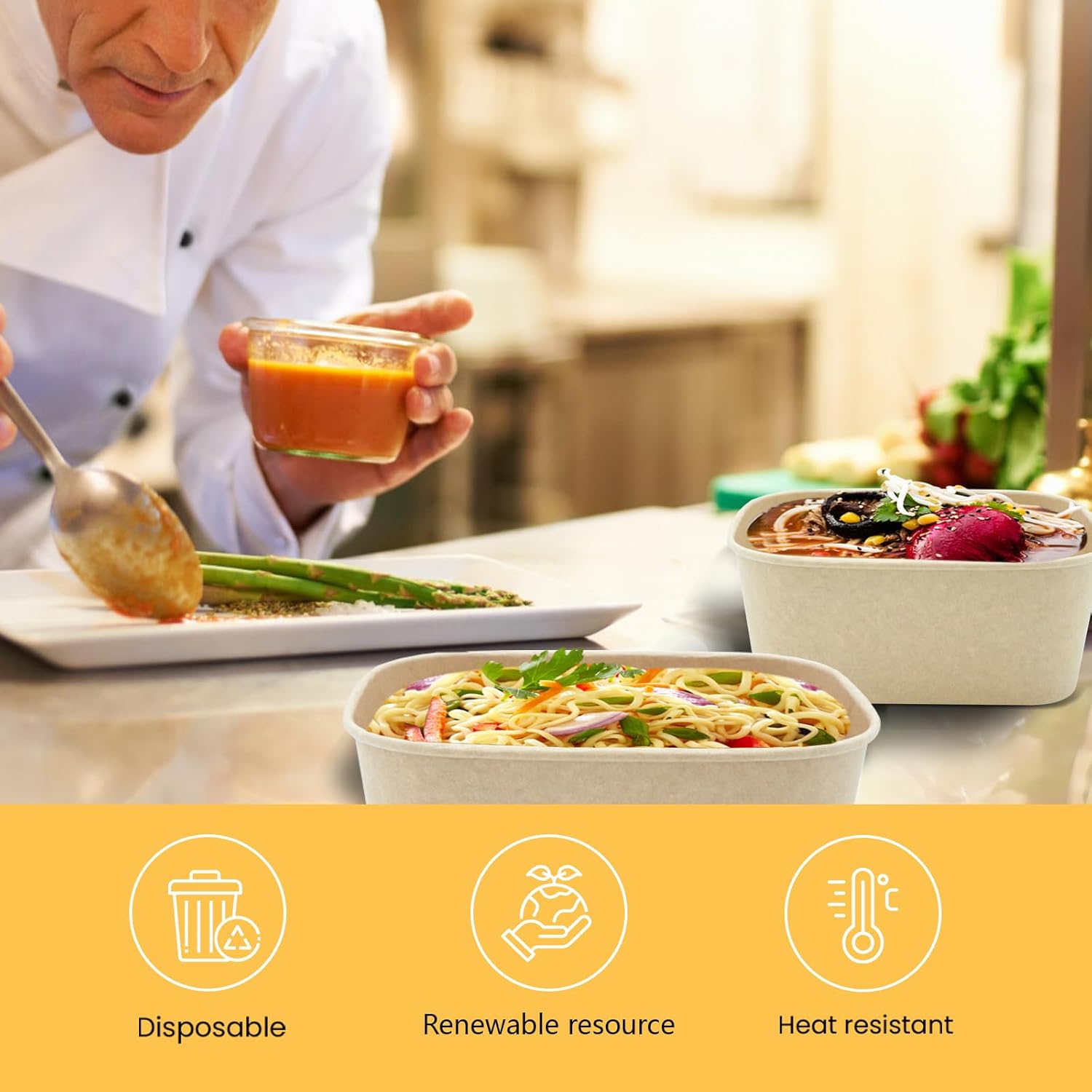 - Large Size and Capacity:50 pack of disposable paper boxes with lids, 6.70" x 4.92" x 2.95" and has a capacity of up to 32 oz (1000 ml). This large size is suitable for buying a lunch takeout