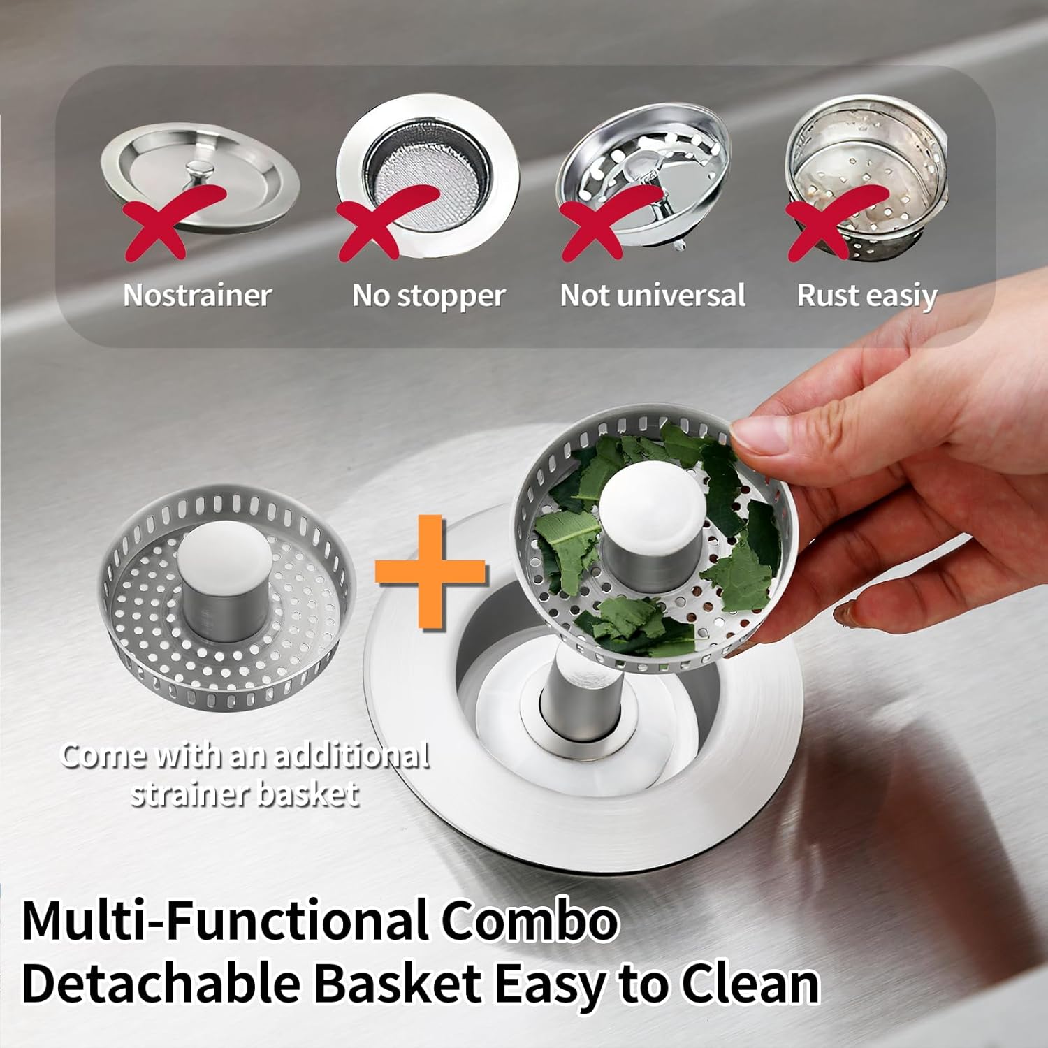 - 3-in-1 Functionality – Combines a pop-up sink stopper, anti-odor seal, and high-efficiency drain strainer to prevent clogs, smells, and insect intrusion in one compact unit.