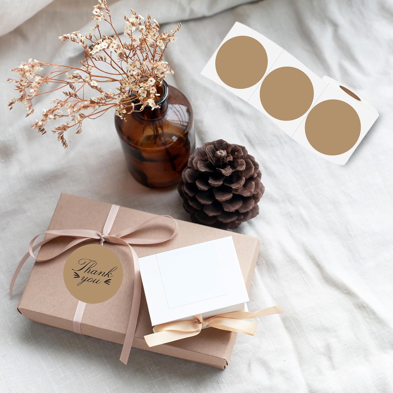 Thermal Label,3 Inch Brown Round Thermal Printer Sticker,Self-Adhesive Round Direct Thermal Labels,Thermal Stickers for DIY Logo Design,Name Tag (300 Labels/1 Roll)