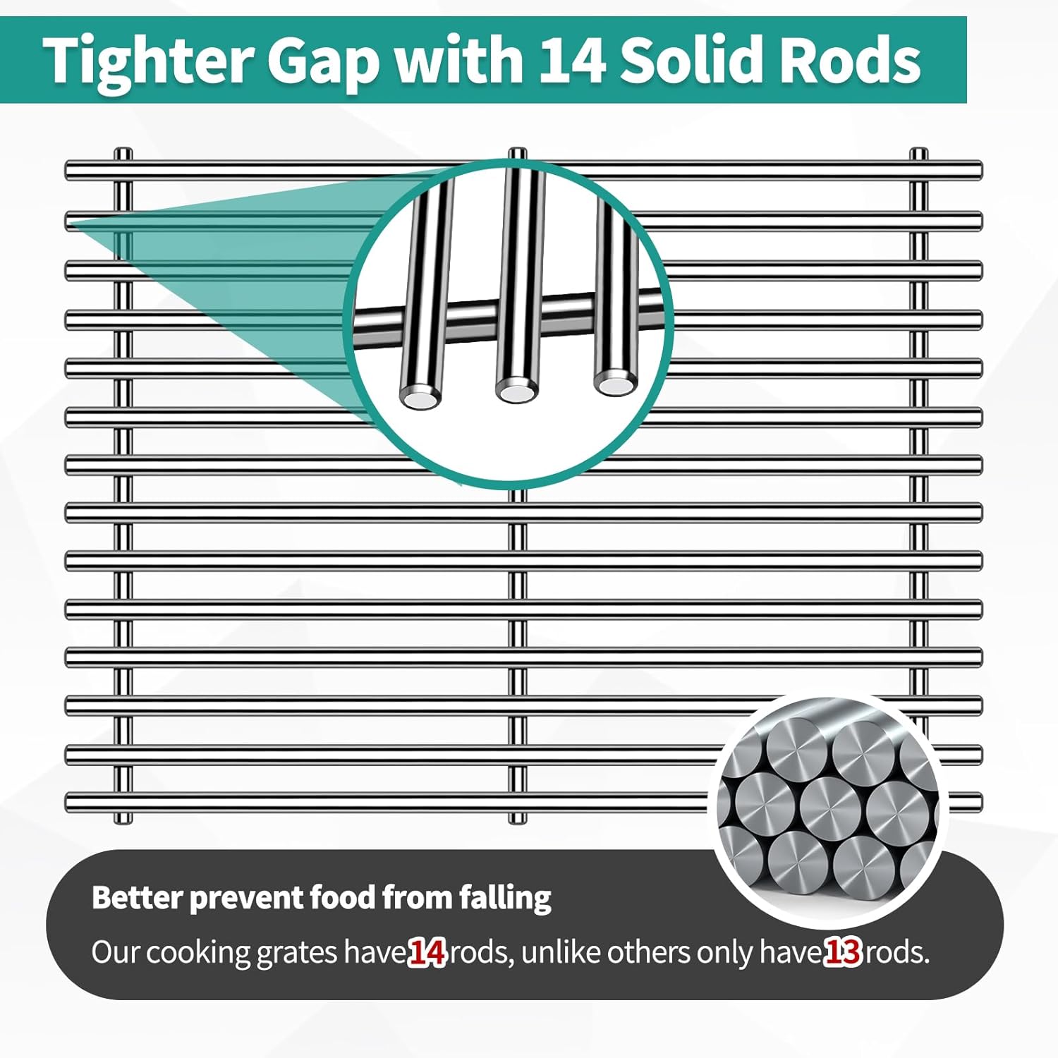 - 【Edge Grinding Design & Protect Your Hands】Our cooking grill grate is free of sharp edges, made with nice welds and smooth surface, no sharp edges and will not hurt your hands. Meyafiny spirit grill grates are made of high-quality 100% food grade 304 heavy stainless steel and well-engineered to prevent rust, which is durable with uniform heating and high corrosion resistance, non-magnetic, much more heavier and heavy duty. Best choice for your Weber Spirit 200 series gas grills.