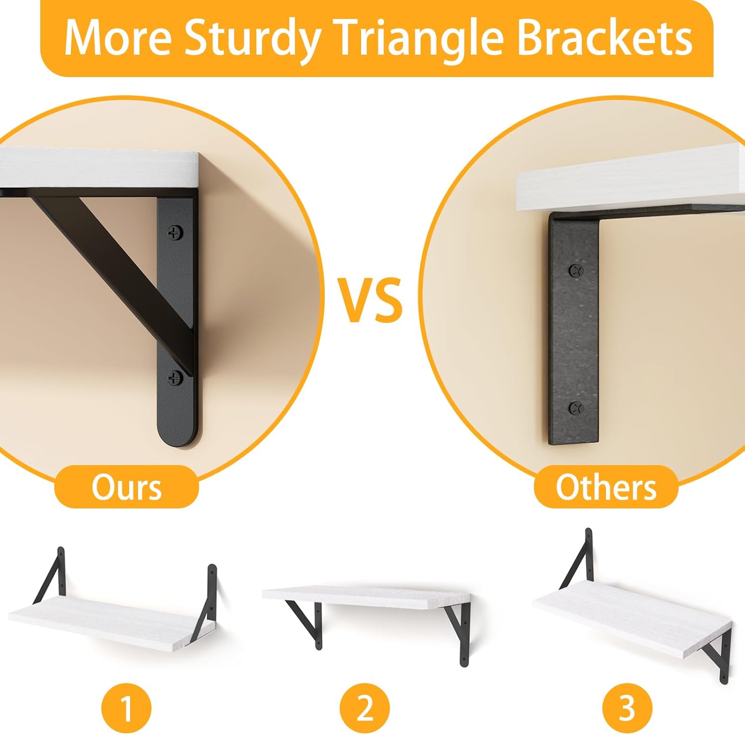 - 【Sturdy & Easy to Assemble】The Triangle shaped metal brackets are more sturdy, with a capacity of 40Lb. YGEOMER wood floating wall shelves for bathroom are super sturdy, very easy to install, all hardware and user manual was included.