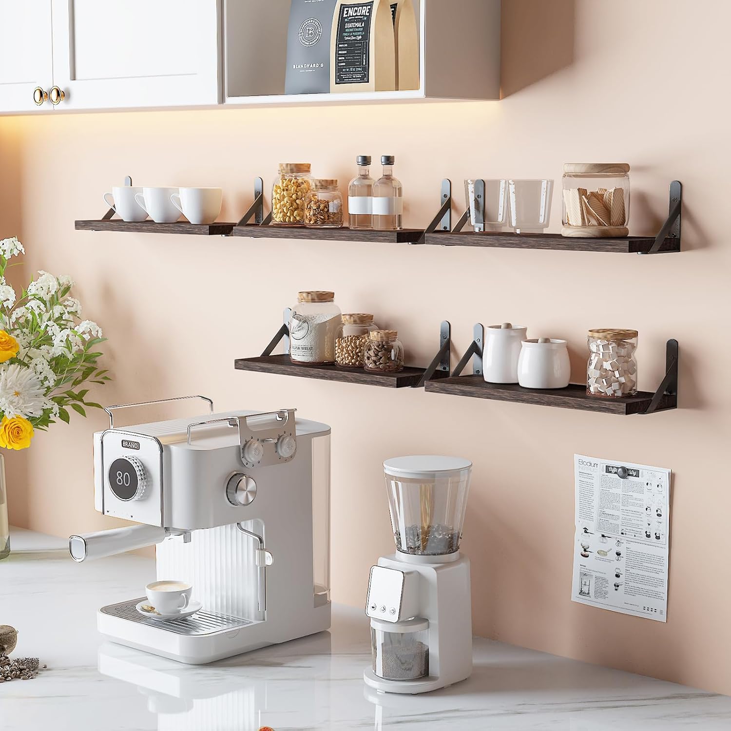 - 【Floating Shelves for Wall】This is a set of Six 16.5 inch long brown wall floating shelves, which is flexible and creative to create your own storage space. Our wall shelves are suit for all-type rooms because they process a simple & simple design.You can combine our floating wall shelves in any way you want.