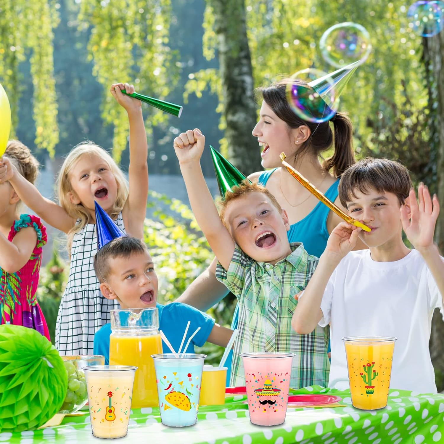 - Enough Quantity: you will receive 50 Mexican themed plastic disposable cups, including 4 patterns of straw hat, cactus, guitars and pie, 12 cups of each pattern, the remaining two cups are random styles, which will add a joyful atmosphere to your party