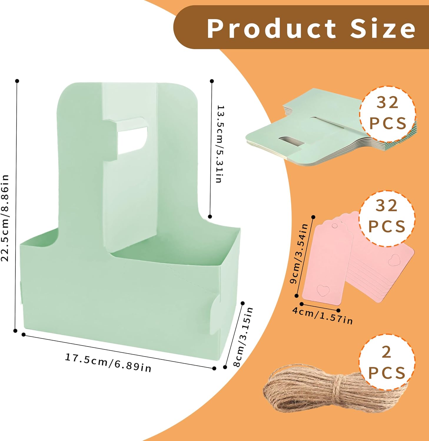 - Sturdy Coffee Cup Support: The coffee carrier is engineered to securely hold 2 coffee cups. The unfolded paper cup holder size is 17.5*9*22.5cm. Drink carrier reinforced structure and snug-fitting design prevent spills and ensure safe transport. The disposable cup holder's sturdy build provides a perfect space for arranging small floral bouquets.