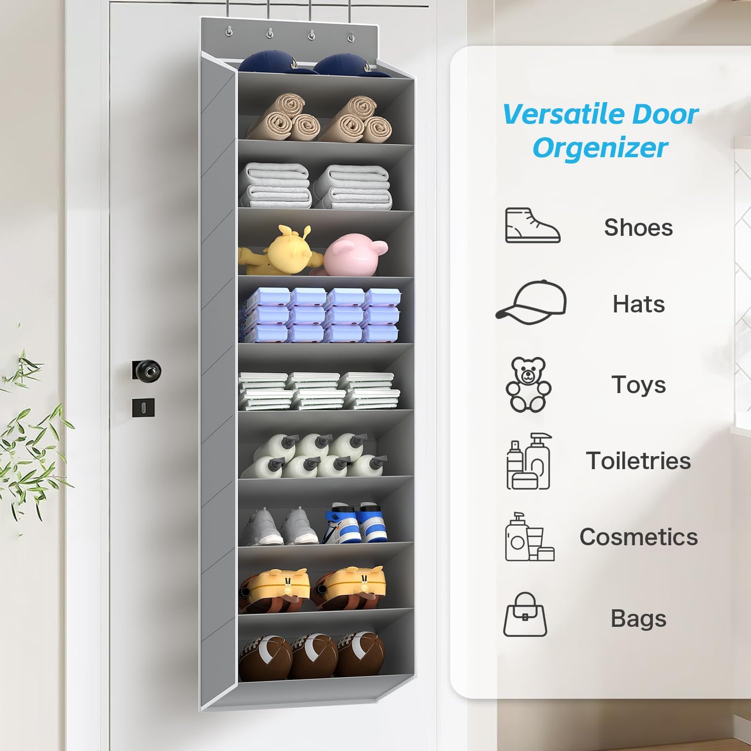 - 【Multi-function Hanging Storage Rack】This door shoe organizer is perfect to store your shoes.In addition, it can be used to store socks, ties, scarves and even toys, snacks, kitchen supplies, toiletry items, cleaning supplies.you can hang it in pantry, bathroom and bedroom anywhere you want