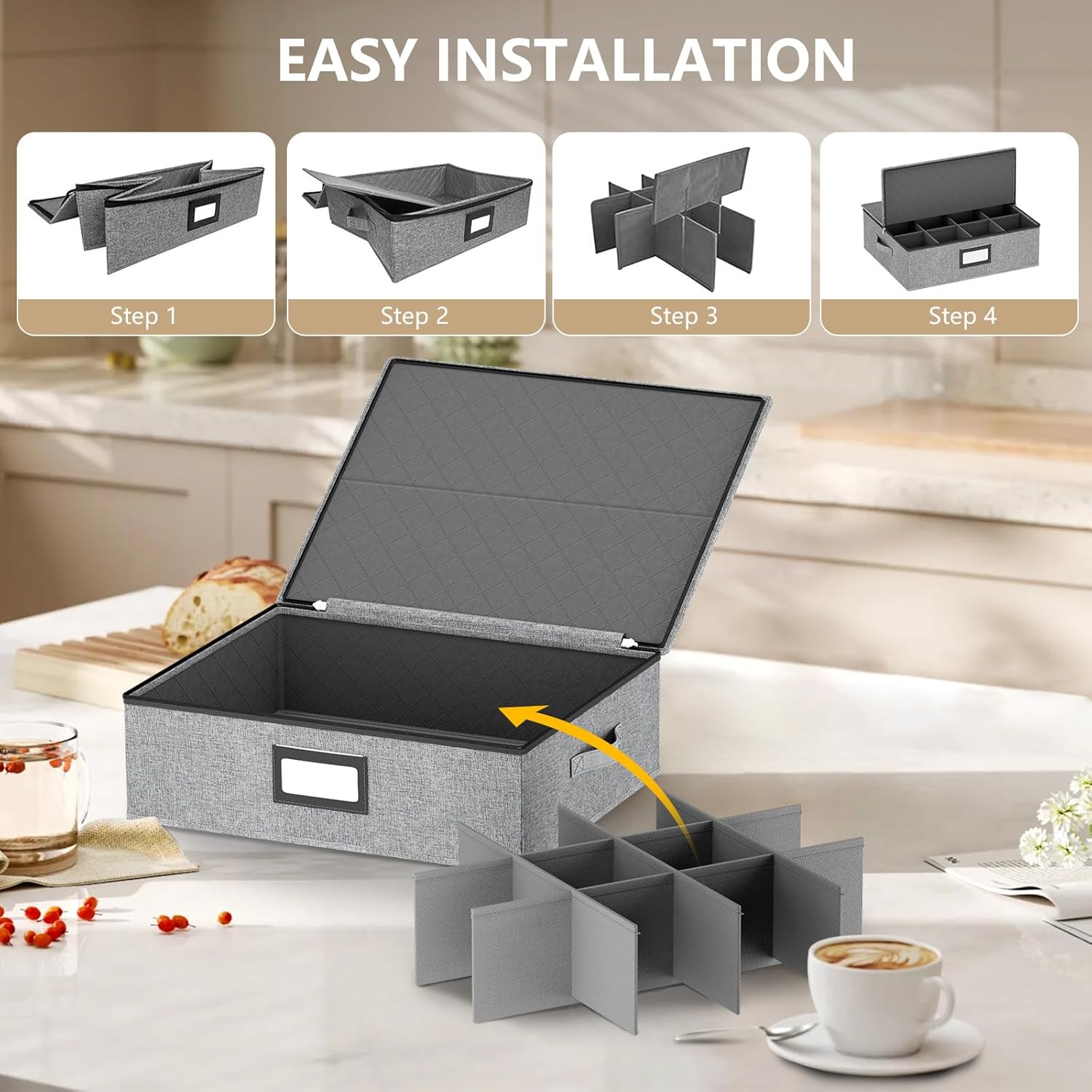 homyfort China Storage Containers (2 Pack Mug Storage Box, Grey)
