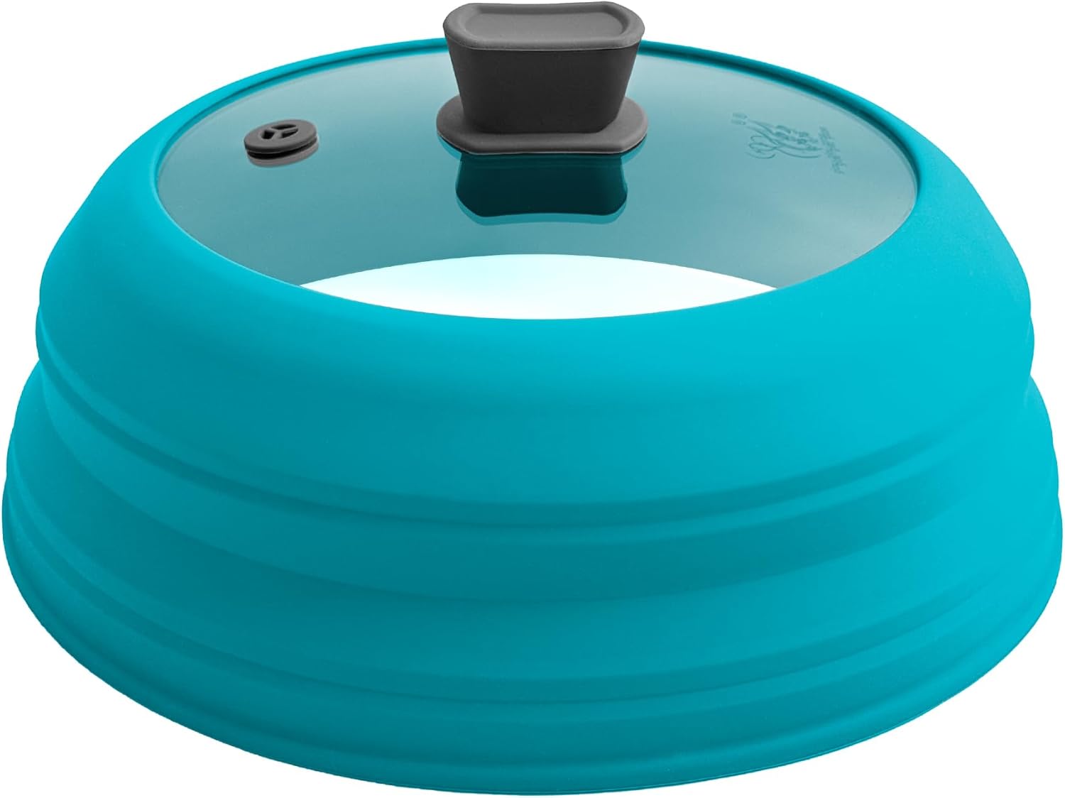Microwave Splatter Cover for Food Collapsible Glass Microwave Cover Silicone Splatter Guard Dishwasher Safe Splatter Lid for Plates, Bowls, Pots & Stovetop Cooking 10.8" Blue