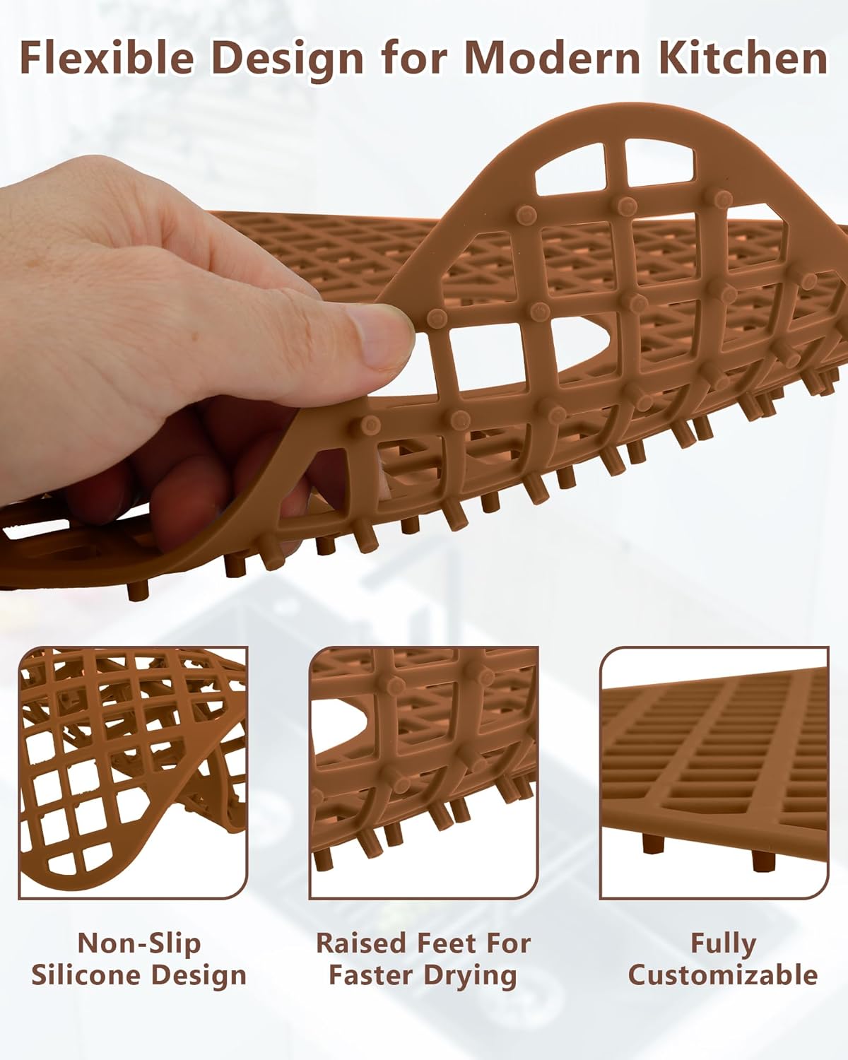 - Multi-Functional Kitchen Essential - This silicone sink protector doubles as a versatile kitchen helper.Use it as a: Non-slip pad for cutting boards; Heat-resistant trivet for hot pans; Cushioned mat for food prep; Stable base for pet bowls. The standard 13-9/16" x 11-5/8" size fits most sinks. Lightweight yet sturdy, it transitions easily between sink, counter, and stove. The perfect all-in-one kitchen sink mat for modern households.