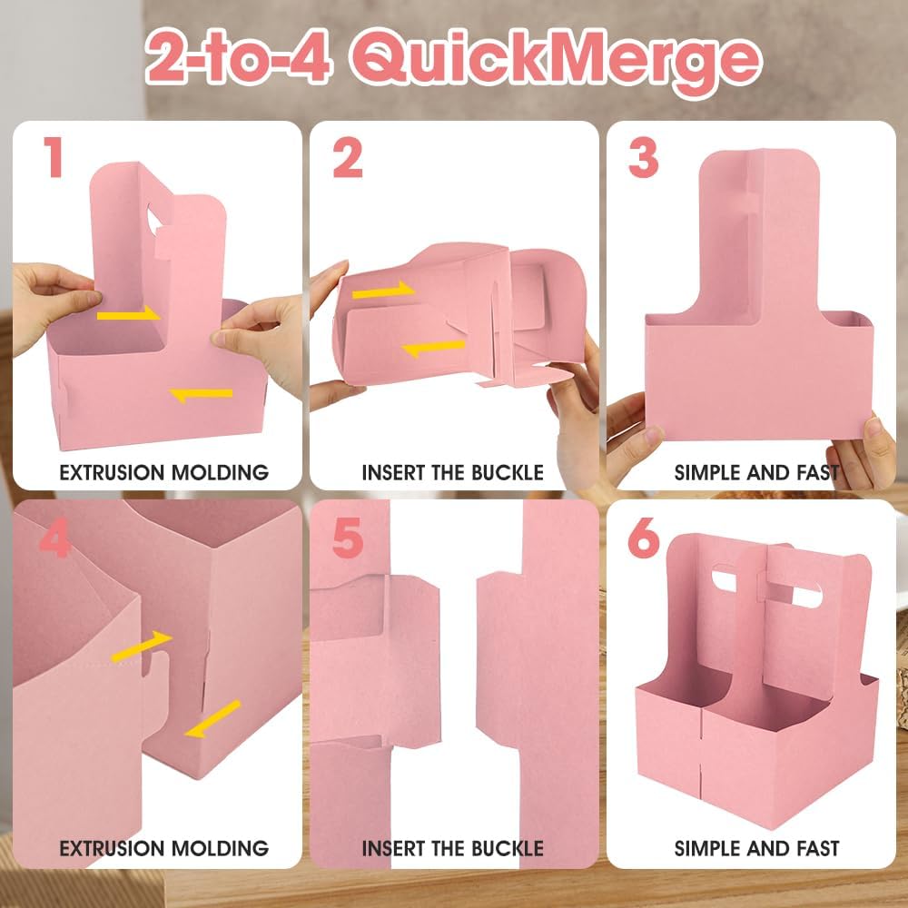 - 【Expandable 2-to-4 Cup Design】Interlock two carriers via buckles to create a 4-cup drink carrier for delivery